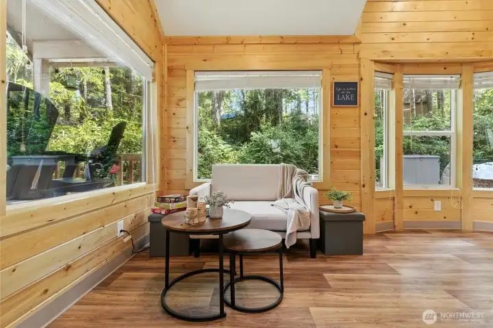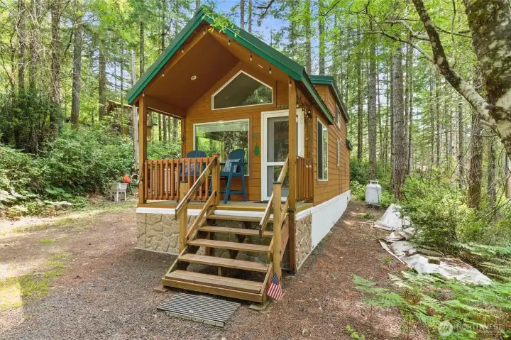 Vacation Daily! Discover how big tiny can feel in this open tiny cabin on .34 acres in the Maggie Lake community. Built in 2018, is it your full-time home or your next investment? Vaulted ceilings, big windows, an electric fireplace, and porchside views of the trees and lake. The main floor includes queen bedroom, 3/4 bathroom with walk-in shower, full kitchen, and plumbed W/D closet. Twin loft beds offer extra space for guests or storage. Sip warm coffee on the covered porch, curl up with a book by the fire, and enjoy crisp walks to the members-only Maggie Lake beach and park (electric motors only). Launch your crab pots and kayaks from the community Hood Canal boat ramp just minutes away. HOA dues only 80/year! Owner Financing Available.