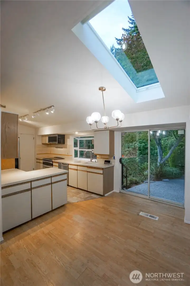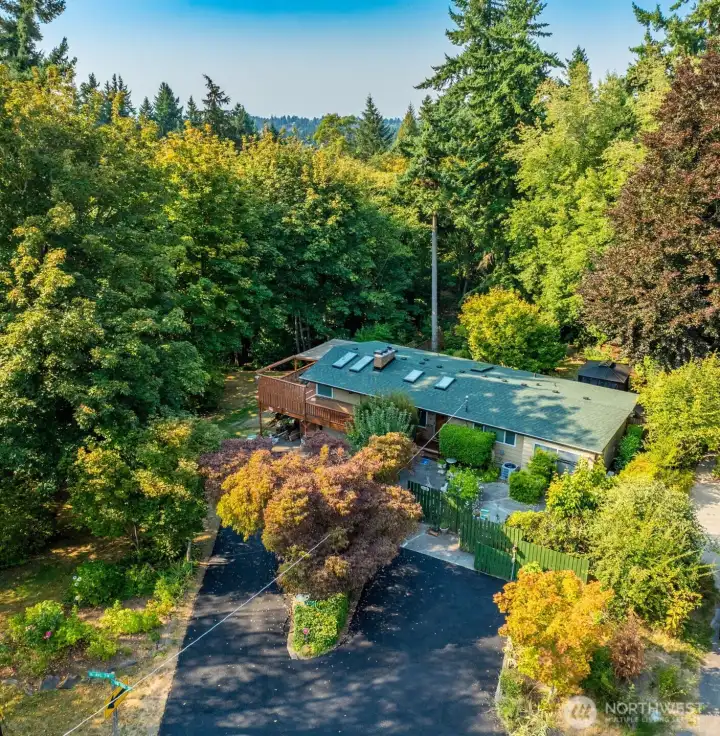 Lovely mid-century home on a quarter acre lot set in natures wonderland as it connects to a gorgeous greenbelt for the ultimate in-city privacy & seclusion. The home has been recently updated with six new skylights, roof with leaf filters, new paved driveway, RV parking with 30 amp hook-up. Generous wraparound deck with oak bar and bar stools included. Backyard includes gazebo & abundance of fruit trees; apple, pear, blueberry, raspberry, plum, cherry, huckleberry & more! Newer LG washer/dryer & all appliances included. Close to hiking at Salmon Creek Ravine Park or take a 20-30 minute scenic hike to the beautiful beach at Seahurst Park!