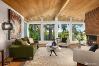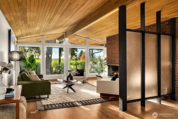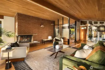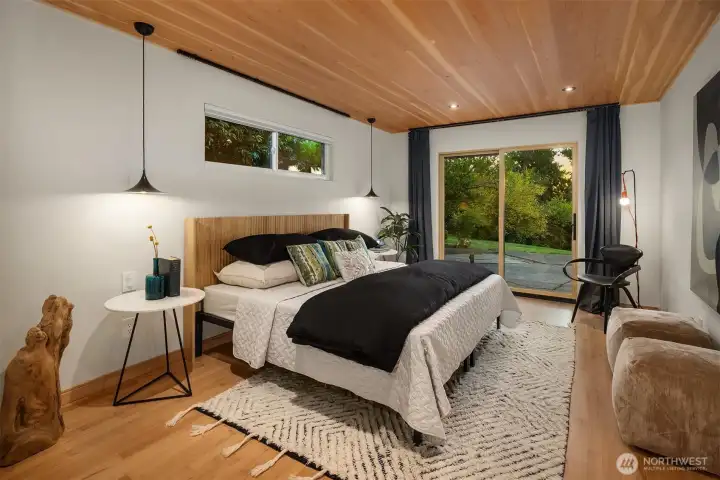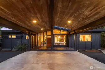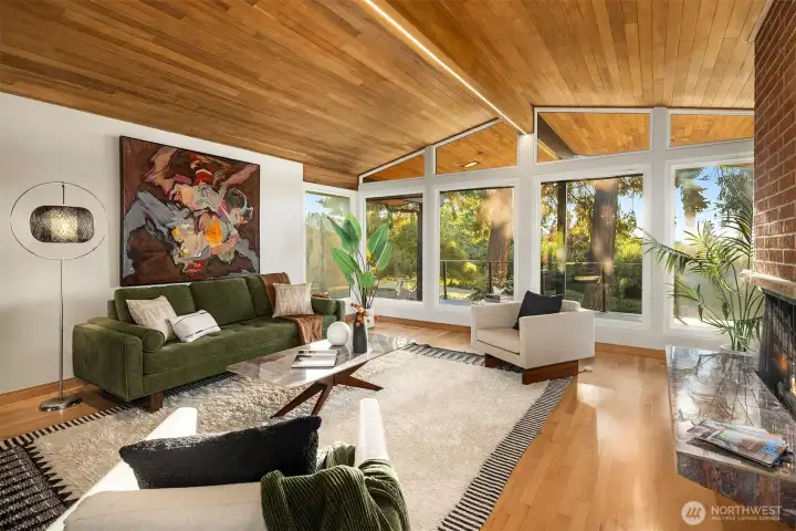 This is the Mid-Century modern you have been waiting for! Every aspect has been thoughtfully updated & they kept the right MCM touches, like hand sanding the wood ceilings! Pull through a quintessential mid-century carport & enter into a stylish home glistening in the evening sun. Every room in the house faces west with abundant light. Double lot with mature trees & large yard create privacy. Kitchen is fully remodeled. New hardwood and porcelain floors. The primary bedroom has been remodeled including wood clad ceilings, new slider to the back yard, new closet & fully remodeled bath w/ heated floors. New 40K membrane roof, furnace + AC, water heater, interior paint, exterior paint, trim, rebuilt deck & chimney tucked. Two community pools!