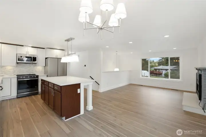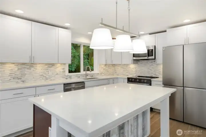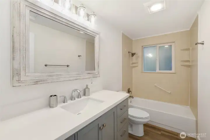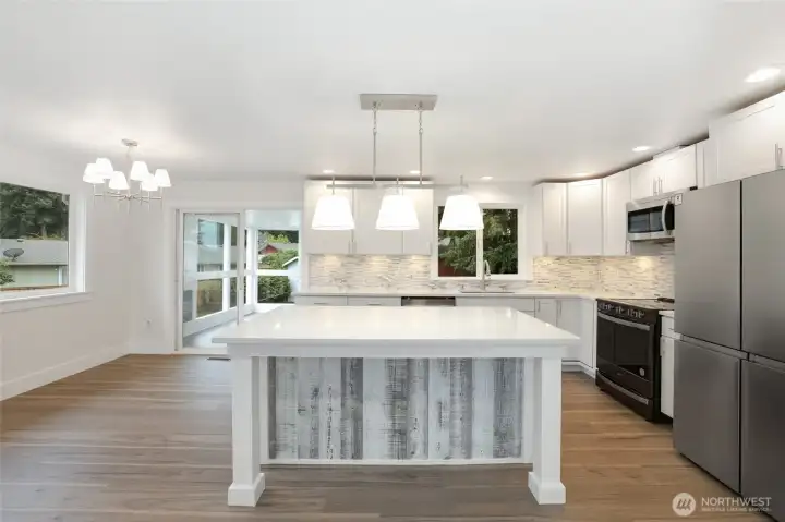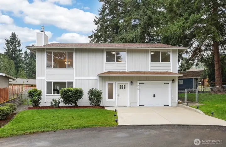 Tucked away on a peaceful cul-de-sac, this fully remodeled home is ready for its next owner. With easy access to I-5, shopping, and all that Olympia has to offer, it features 3 bedrooms plus a bonus room ideal for a home office or additional bedroom. The beautifully updated kitchen boasts white shaker cabinets, quartz countertops, and stainless steel appliances. Upstairs, you'll find two spacious bedrooms, a full bathroom, and a versatile flex room. The lower level includes a large primary suite with an attached bath, a utility room, and extra storage. Enjoy outdoor entertaining in the large fenced yard with a deck and covered area. Additional updates include a new roof and electrical panel.