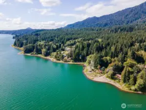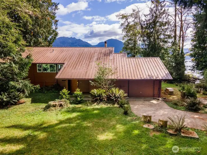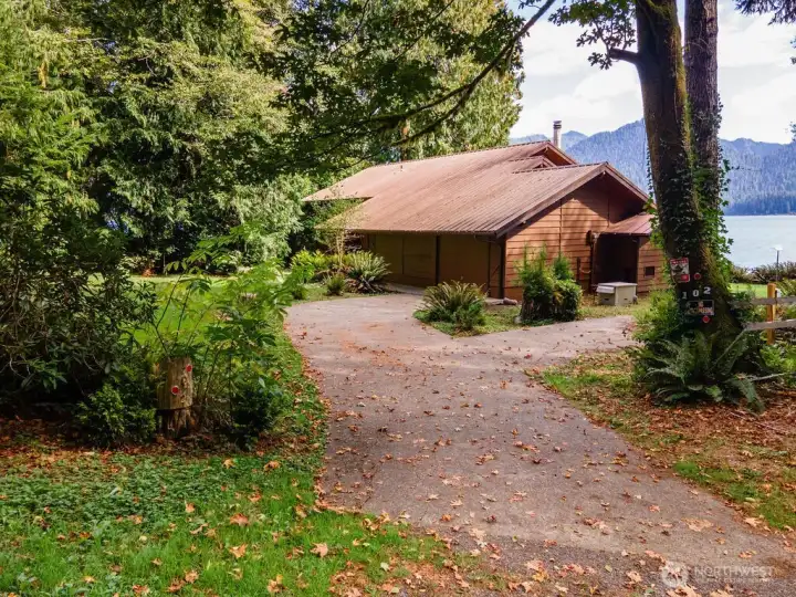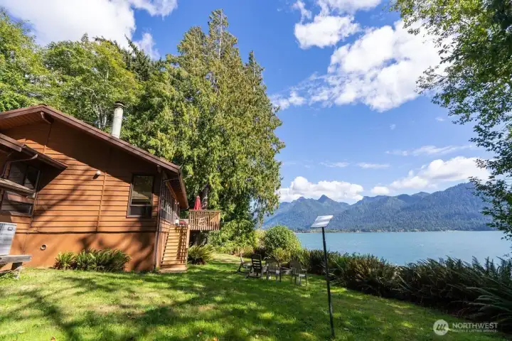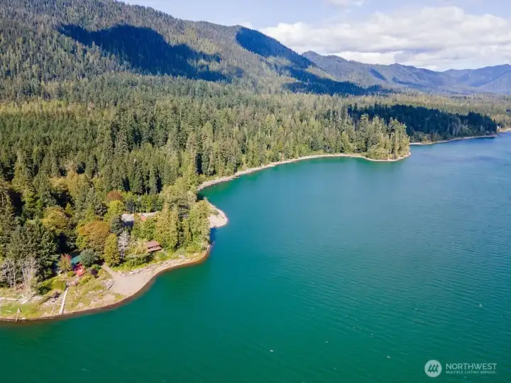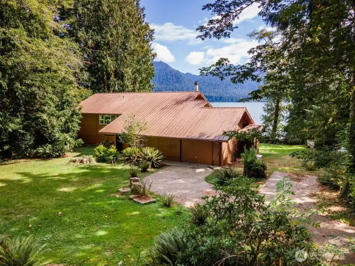 Welcome to your secluded North Shore sanctuary where the ancient forest meets pristine Lake Quinault. This is a rare residential opportunity—unlike purely recreational land, this property allows for year-round living on the lake. Enjoy 195 feet of private lake frontage offering a breathtaking 180° panorama of the water and rolling emerald hills. This purchase includes two separate lots, giving you more room to roam and reconnect with nature. Inside, you'll find a spacious living area with vaulted ceilings and a private sauna. Features include a durable metal roof, attached garage, and an RV site with hookups. Embrace this tranquil escape!