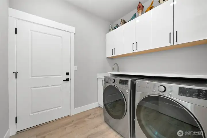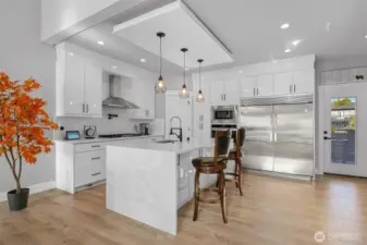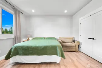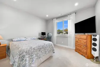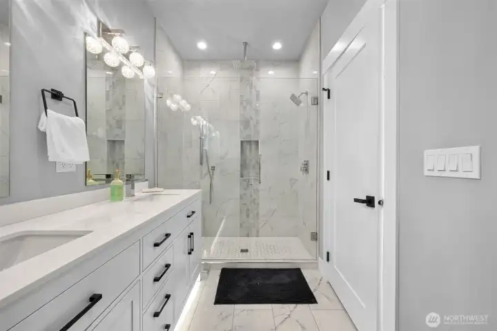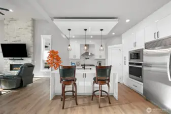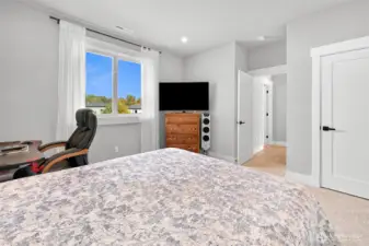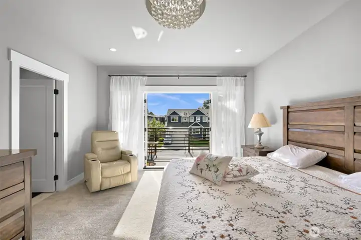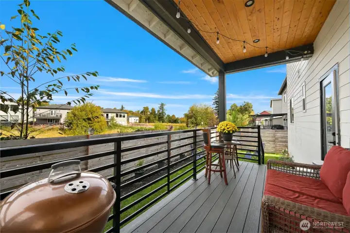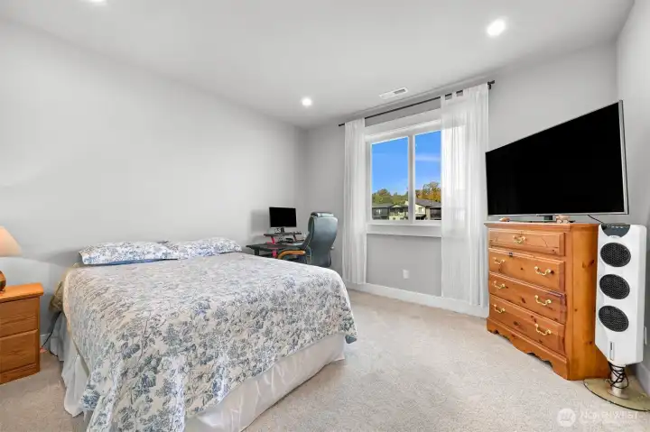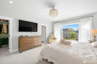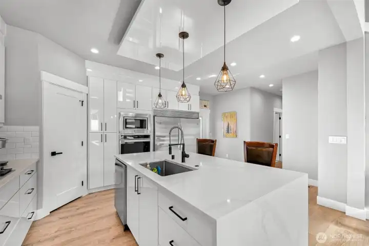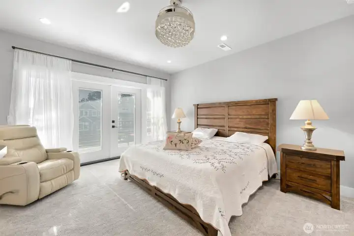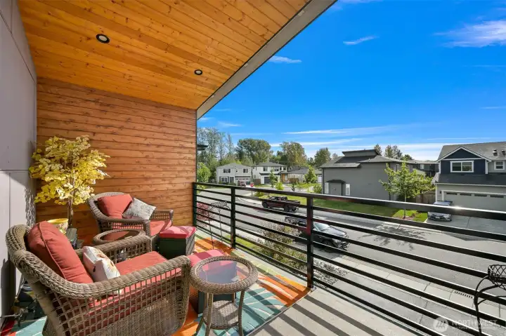 One of Ferndale's modern elegance in desirable Malloy Terrace. This open and spacious 4-bedroom home welcomes you with soaring 19 ft ceilings in the living room anchored by a gorgeous floor-to-ceiling rock wall fireplace. Chef's kitchen features sleek waterfall quartz counters, a walk-in pantry, & double fridge. One bedroom on main sits adjacent to a full bathroom. The primary suite upstairs offers a walk-in closet, bathroom w/ double vanity + step-in shower, and French doors that lead to its own covered deck. Fully fenced yard backs to the community greenspace & trail. Close to Vista Ridge Park & Cedar Creek Park plus easy access to I-5 via Thornton Overpass. Come and see this gem!