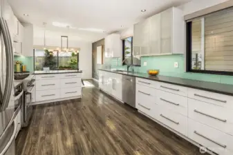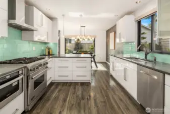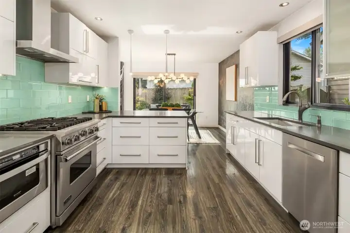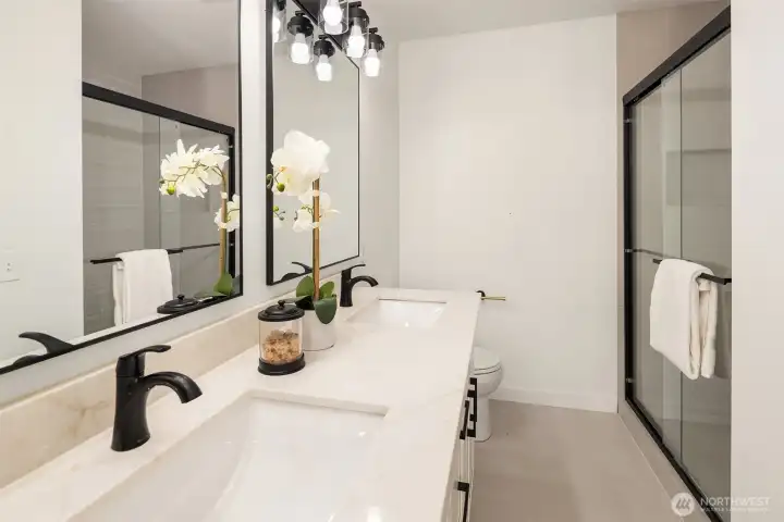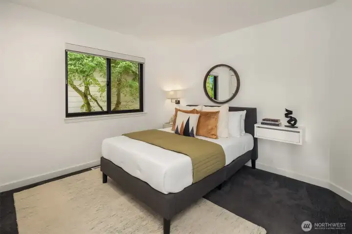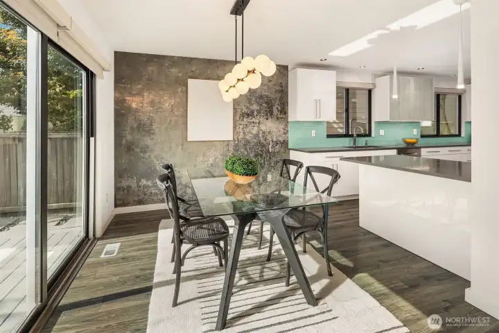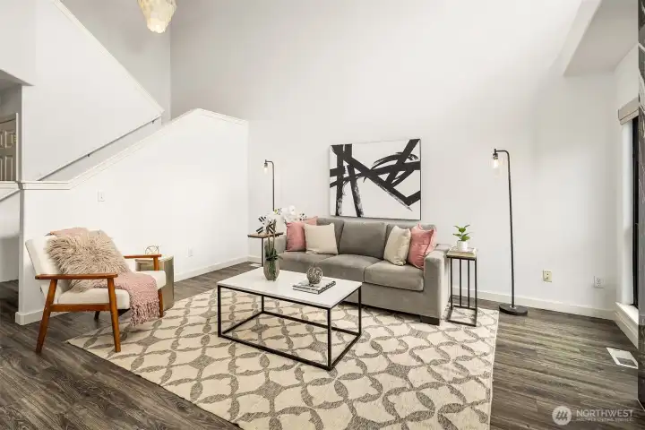 Step into this reimagined Rosemount townhouse where style, comfort, and convenience meet. The main level features soaring vaulted ceilings, a cozy gas fireplace, and abundant natural light from south-facing windows. A chef’s kitchen with quartz counters, high-end stainless appliances, and generous storage opens seamlessly to a formal dining area, deck, and fully fenced yard with low-maintenance astroturf—ideal for entertaining. A powder room and full laundry complete the level. Upstairs, the luxurious primary suite boasts a spa-like 5-piece bath and walk-in closet, joined by two spacious bedrooms and full bath. With a 2-car garage, central heating/cooling, and prime I-5 access, this home blends elegance with everyday ease.