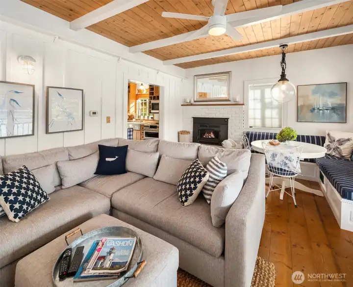 This historic 1904 Cape Cod 2 bedroom, 3 bathroom waterfront retreat has been beautifully refreshed with timeless coastal charm. Wide-plank floors, wainscoting, a farmhouse sink, new appliances, and all-new bathrooms blend vintage character with modern comfort. The light-filled living area opens to a covered porch made for morning coffee or sunset watching over the harbor. Downstairs, a spacious bonus room offers extra sleeping space and opens to a deck and inviting hot tub. With easy beach access, a grassy lawn, private dock, and shed, perfect for paddleboards and kayaks, this is island living at its best—a haven for boaters, beachcombers, and crabbing enthusiasts alike. Ample parking adds convenience to this ideal beach getaway.