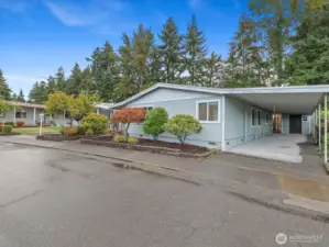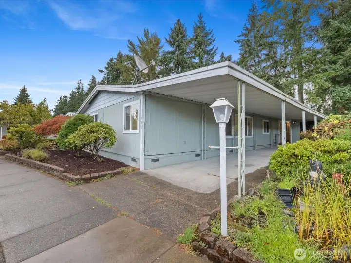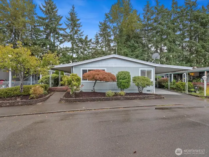 Welcome home to Kloshe Illahee, an active 55+ community near shopping, dining, freeways, & medical services. This manufactured home lives like a stick built. There's tons of storage space inside, plus a workshop & exterior insulated storage room outside. Enjoy the updated kitchen with a newer stainless steel Kenmore refrigerator, dishwasher, Frigidaire oven & granite island countertop. The large covered outdoor space provides year round use & carport accommodates three deep under cover. Spacious lodge-style clubhouse amenities include a tennis court & outdoor pool, indoor hot tub & sauna, theater & game room, fitness center & pool table. Mingle with your neighbors at Tai Chi, chair exercise class, card games, bingo, bunco, pinochle & more!