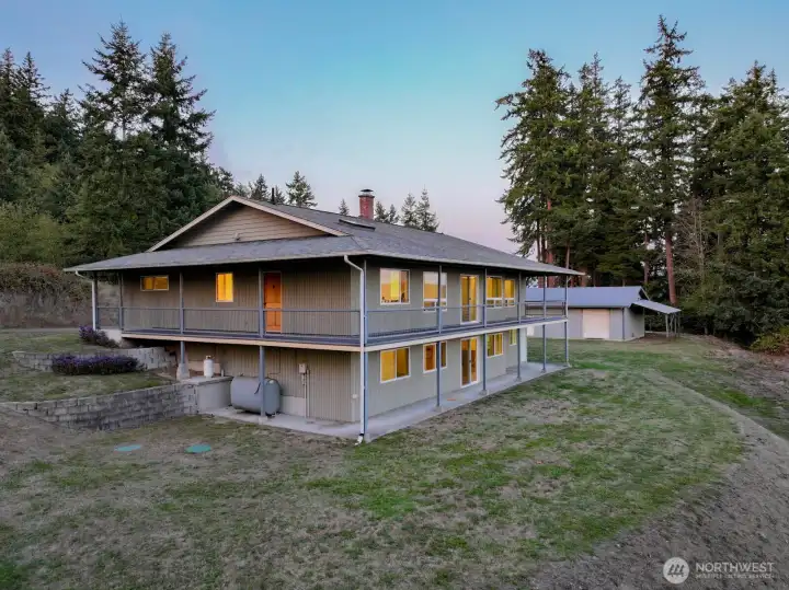Enjoy Hood Canal views from this beautifully designed 3-bedroom, 2,926 sq ft home that is nestled on 1.20 acres of property. The open and bright kitchen is complete with all appliances, and it flows effortlessly into the dining and living area, all showcasing beautiful water views. Downstairs offers a flexible space with water views—ideal for a home office, bonus room, or creative studio. A spacious attached 2-car garage is complemented by multiple carports and a 30' x 36' (1,080 sq ft) shop/garage equipped w/power, 220 service, & a work pit—perfect for hobbyists or vehicle enthusiasts. A couple minutes to Hwy 104 and the Hood Canal Bridge. There's room for gardening, BBQ's or simply soaking in the view, in the beautiful Pacific Northwest!