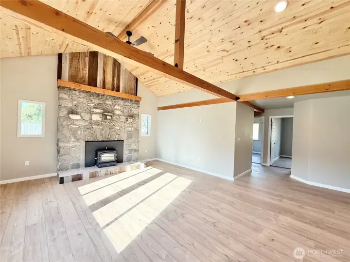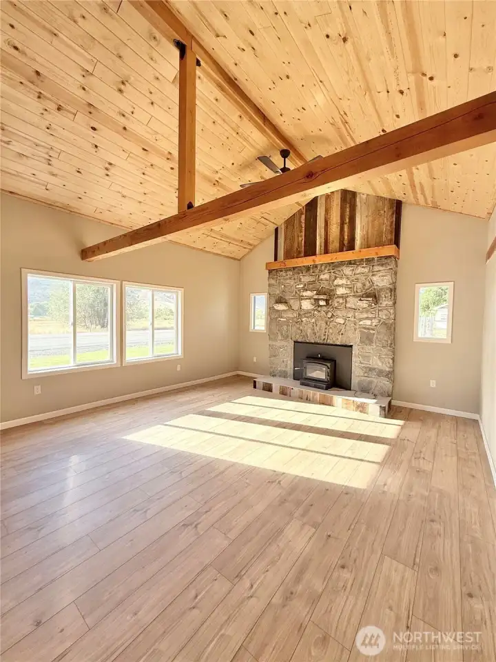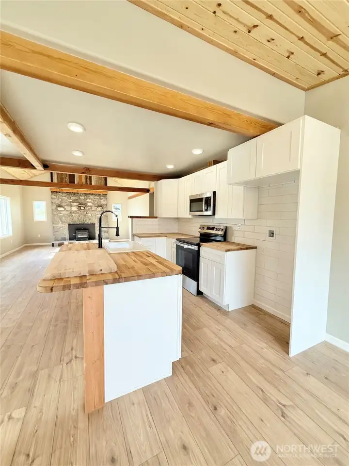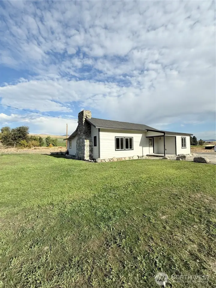 Okanogan -Old Hwy 97 just over an acre! COMPLETELY REMODELED 1860sqft 3 bed/1.75 bath home w/new exterior/interior paint, fresh new vinyl flooring, & all new light fixtures! Pristine new cabinets w/oversized walk-in pantry & butcher block island/countertops - all appliances stay, dining room, vaulted ceiling living room with native rock wood stove, reclaimed wood accent pieces, beautiful beams, full size tiled bathroom w/jetted tub, primary bedroom with three-quarter tiled en-suite, oversized laundry & mudroom off back entry w/new trek deck landing. Brand new well put in 2025. Septic. Basement for additional storage/utility room. Graveled driveway & rock yard decor. Additional space for potential shop or garage! $354,900 MLS-2441531/H-3724