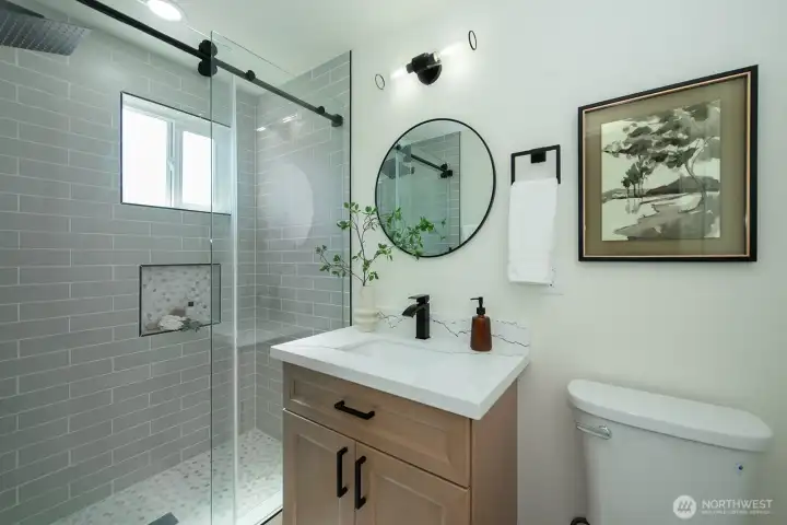 Beautifully Remodeled 4-Bedroom Home with Seattle and Lake Washington VIEWS! This 3,595 SF home sits on a 10,000+ SF lot and features a new roof, modern kitchen with Quartz countertops, new appliances and fully updated bathrooms. Enjoy multiple living spaces—family room, bonus room, and media room with wet bar—plus two laundry areas. New LVP flooring, tile and plush carpet throughout. Two new Hot H20 tanks. Enjoy outdoor living on the expansive multi-level deck, shaded by vining grapes over a charming trellis. A detached dwelling offers endless possibilities - guest house, studio apartment, home gym or workshop. Ample RV and boat parking make this home move-in ready with flexible living and room to enjoy it all.