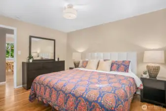 Charming, spacious and private mid-century home. Large picture windows in the living and dining rooms let in great light and look out at trees in the front yard. 3 bedrooms on the main and an office/non-conforming bedroom with a closet downstairs. Kitchen has space for a 2nd eating area. Spacious family room on the lower level has room for a sitting/tv area and more. Relax on the private front deck or the back patio area. Fenced yard with wide side yard to the south. Storage in the 1-car garage and large storage closet downstairs. Updated electrical with smart outlets, new water main, heat pump for efficient heating and cooling, new carpet on lower level, hardwood floors and 2 fireplaces. Close to coffee shops, bars/restaurants and transit.