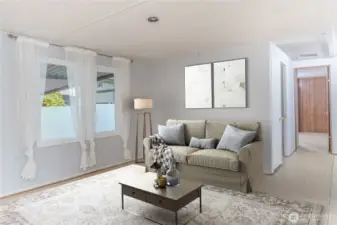 Enjoy senior living in this 3-bedroom, 2-bath home featuring NEW CARPET. 2020 updates included a new roof, vinyl windows, ductless heat pump with two heads, water heater and insulation. Kitchen has an eating area and all appliances, including washer and dryer. Living room opens to the dining area and there’s a separate family room. Primary bedroom has double closets and an attached bath with walk-in shower. The second bedroom includes a walk-in closet and access to an updated guest bath. Photos are virtually staged. Yard is low maintenance, with a patio and a large enclosed deck. Cedar Glen offers community activities; bingo, cook offs & more! Convenient location, mins to downtown Poulsbo, Clearwater Casino and Bainbridge-Seattle Ferry.