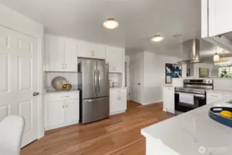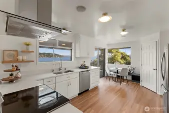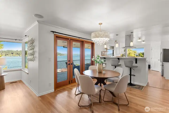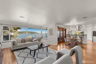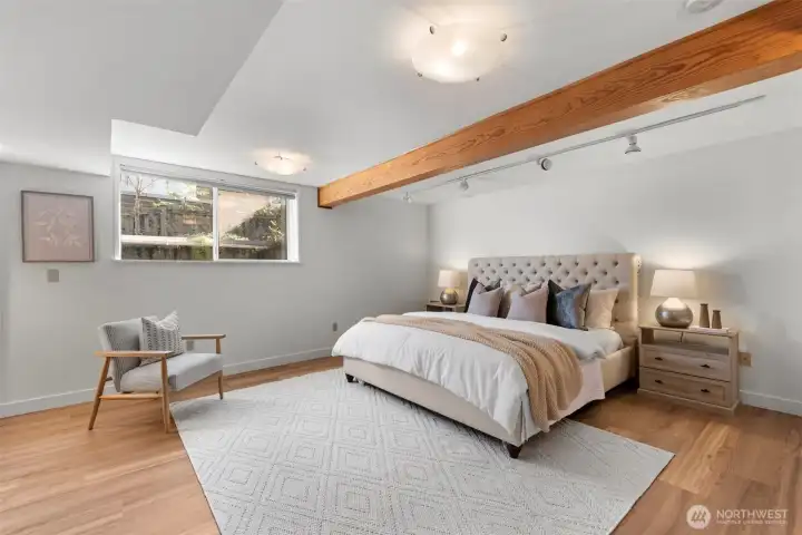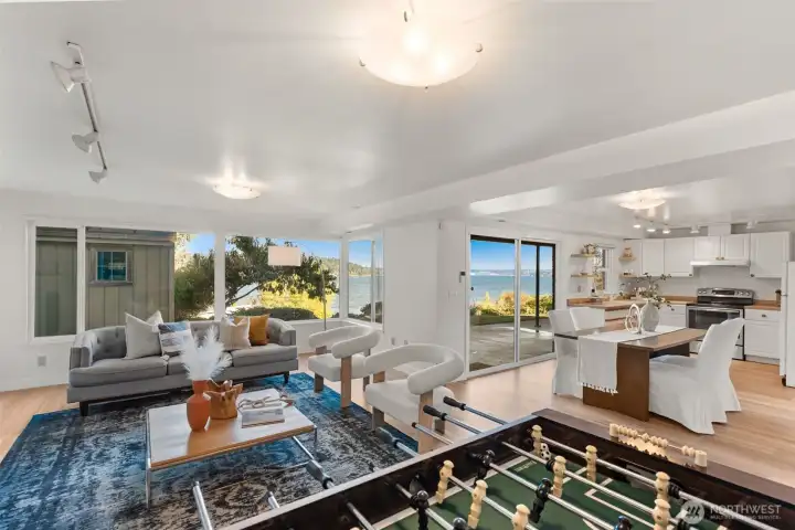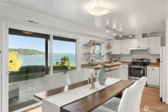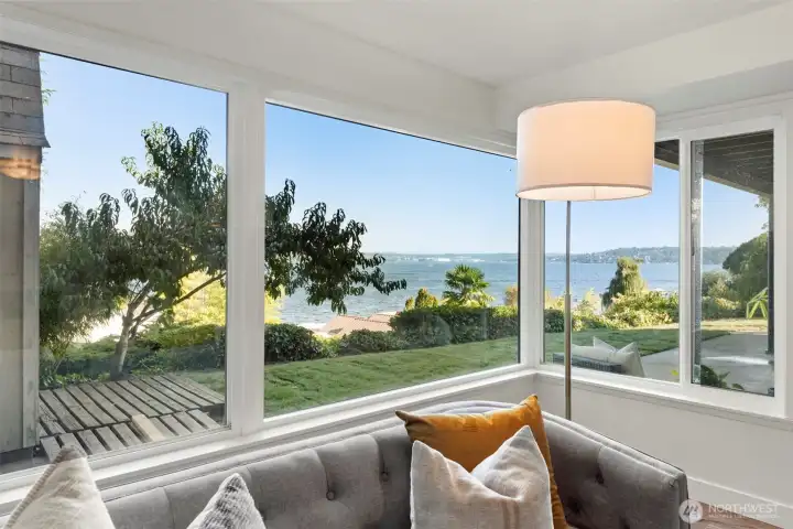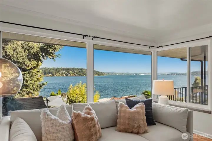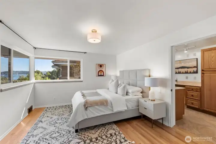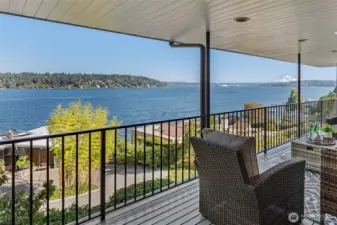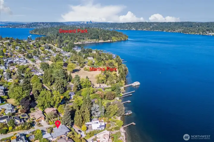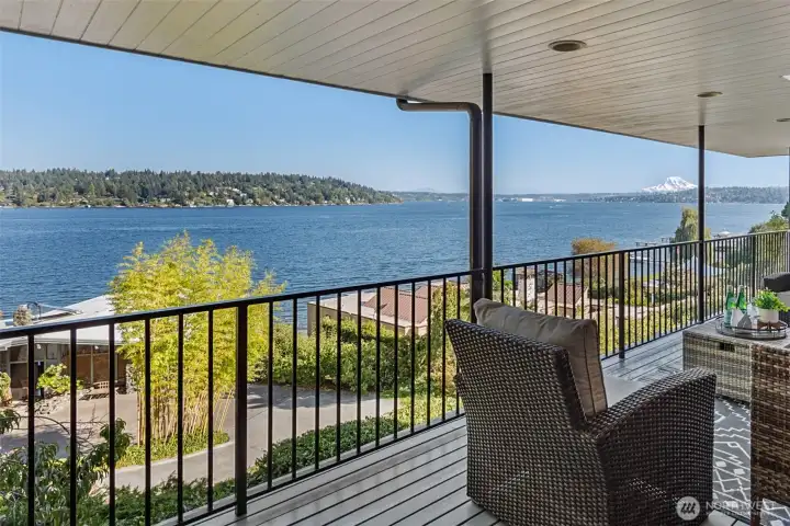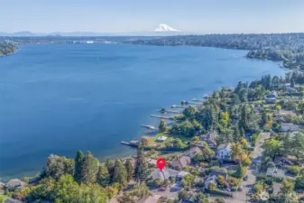 Wake up to Mt. Rainier framed over Lake Washington—views stretch across both floors of this Seward Park home. A covered deck and a covered patio extend both the kitchen & dining for year-round outdoor living, while gardens below offer fruit trees and fresh herbs. Inside: new open kitchen with bar, breakfast nook & walk-in pantry, plus a primary suite with whirlpool, triple shower & heated floors. Oversized garage fits an RV & even a climbing wall. Lower level with 2nd kitchen, 3 bedrooms, bath & sauna—perfect for ADU/Multi-gen living. Main floor extra finished rooms great for office & play area. New roof, updated systems, A/C, hardwoods, LVP, and generator-ready. Steps away to public lake access with nearby parks. Don’t miss this rare one!