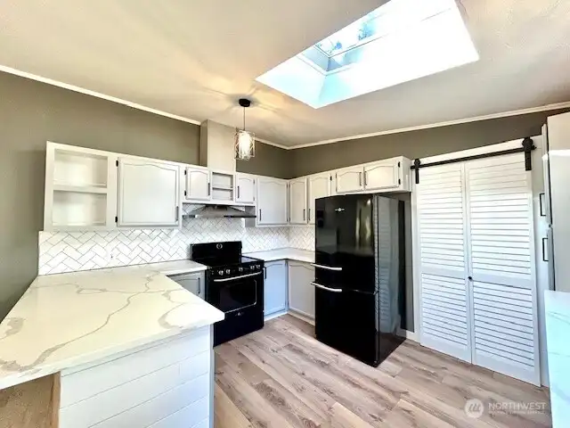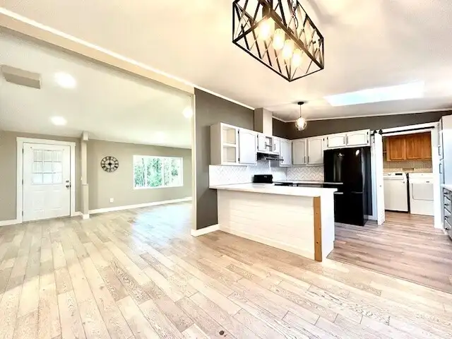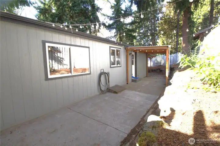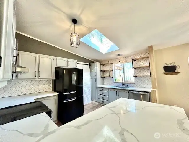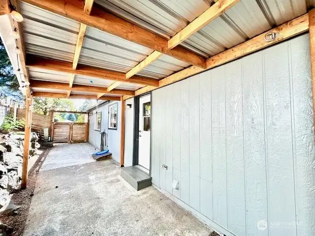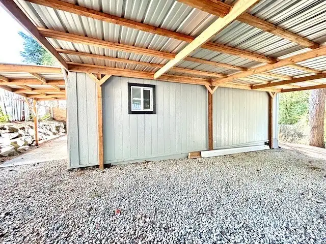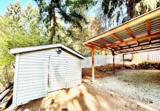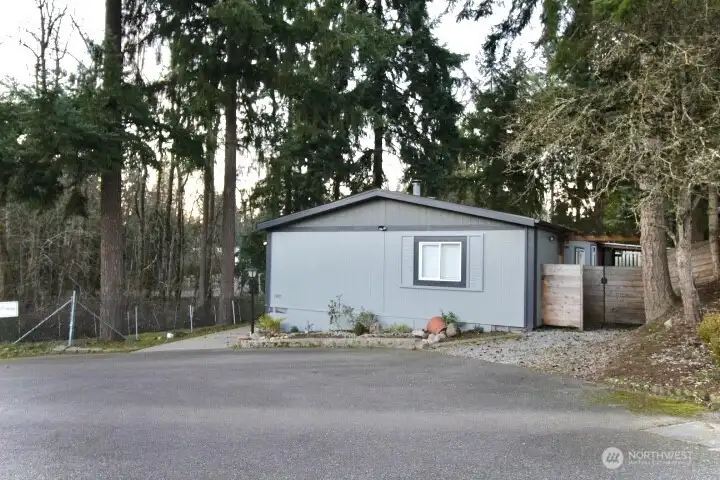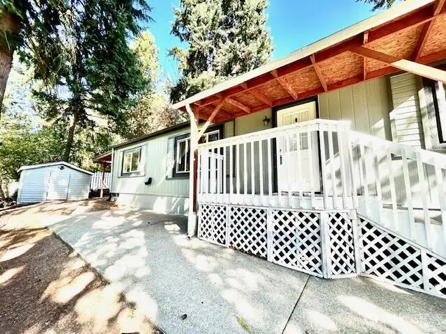 Completely updated manu home in an all-ages mobile home park. This beautiful home offers a lovely view surrounded by trees. A serene and private atmosphere tucked away in the park. It has new windows and natural lighting throughout the house, fresh paint, 2 stunning bathrooms, a skylight in the kitchen, lots of cabinets and a walk-in closet. The kitchen is huge, new cork counter tops, updated flooring, a spacious laundry room. It also has a big shed and carport coverings on all sides of the home. Terrific! Lots of potential with all the space outside, ideal for gatherings, gardening or set up a playground. Enjoy the trails, shopping center, restaurants and schools nearby.
