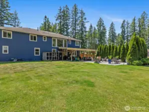 Custom-built 4BD+Office+Rec Room home in sought-after Warm Beach’s Hidden Creek Estates—gated enclave of just 3 homes on 1.19 manicured acres! Features soaring 20’ ceilings, walls of windows, gas fireplace & built-ins. Gourmet kitchen boasts granite counters, freshly painted cabinets & SS appliances. Two primary suites w/ensuite baths (one on each level). Upper level includes 2 more bedrooms, HUGE rec room, laundry & office/5th non-conforming BR. BRAND NEW 20x20x16 shop w/loft & lift, dog kennel, shed, partial new fence BS premium vinyl flooring throughout. Covered 20’ patio + 30’ extension, 3 rock fire-pits, BBQ stub, & play set. 3-car garage, privacy trees, and beautiful landscaping—perfect for entertaining & serene living!