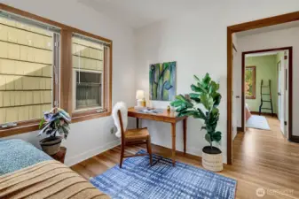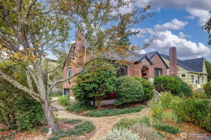 Beautiful brick Tudor on a Sunny corner, on a friendly street! Right across from a wonderful park and it's a short walk to the lake! You are moving into a gem of a location. This house gets lots of light from East, South, and West. There's a solid deck off the kitchen with a few stairs down to a large magical side yard. Gleaming hardwoods and nice woodwork in the living and dining rooms. High quality windows throughout. The basement has nice high ceilings for a future build out. Check out the narrated walkthrough video.