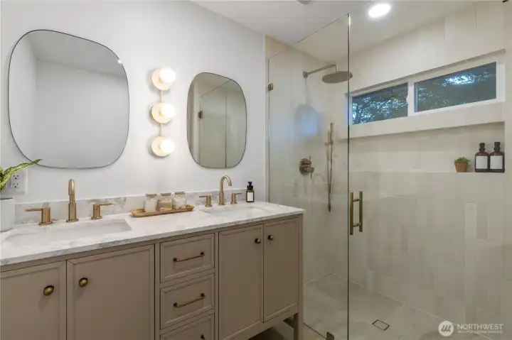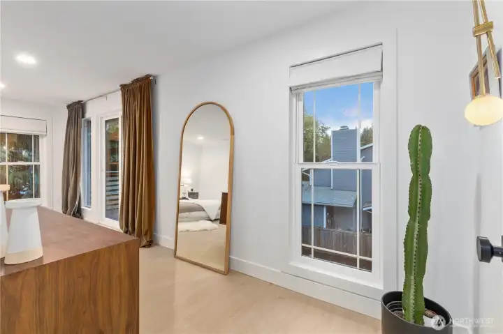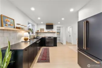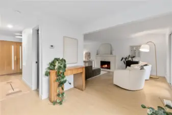 Tucked on a spacious corner lot in a peaceful neighborhood, this home has been thoughtfully renovated with custom design touches + high-end finishes throughout. Step through the striking wood doors into an open kitchen with black quartz counters, artisan tile backsplash, Café appliances + walk-in pantry. Just off the kitchen, a bright living area centers around a cozy brick-surround fireplace. The main-floor bonus room is ideal for an office or 4th bedroom. Upstairs, the primary suite feels like a retreat, with an en suite bath showcasing a curbless tiled shower and a laundry area seamlessly built into the walk-in closet. Two additional bedrooms share a beautifully designed bathroom with rich, color-drenched tilework. This is the one!
