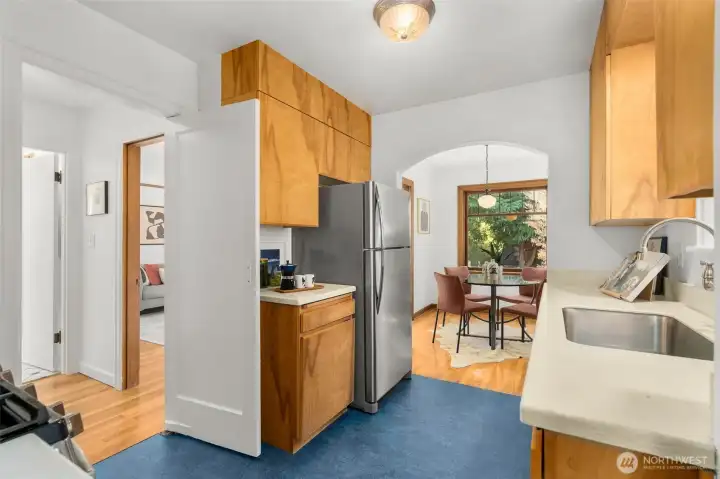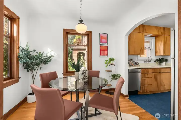 Tucked among evergreens on a quiet North Beach street, this 1931 bungalow blends vintage character with everyday ease. Original hardwoods and millwork glow with history, framing light-filled rooms that invite calm and connection. The dining room and classic kitchen retain their 1930s charm, while the spacious backyard and flexible lower level offer room to play, garden, or grow. Close to coffee, parks, and the shoreline—this is classic Seattle warmth at its best.