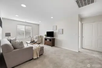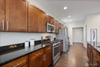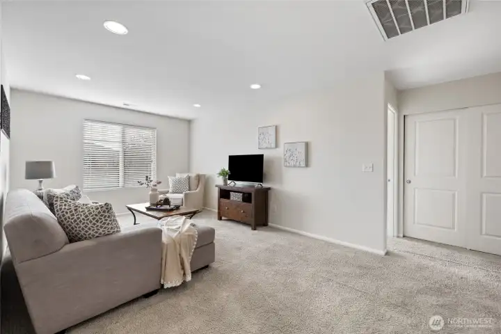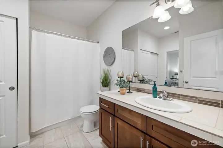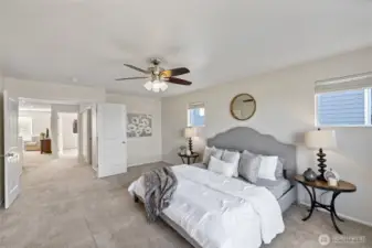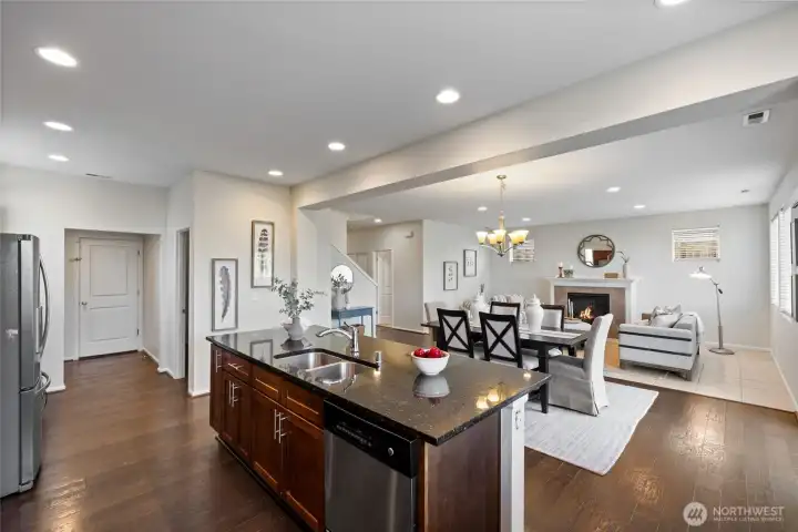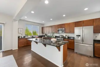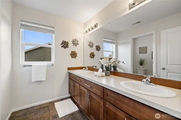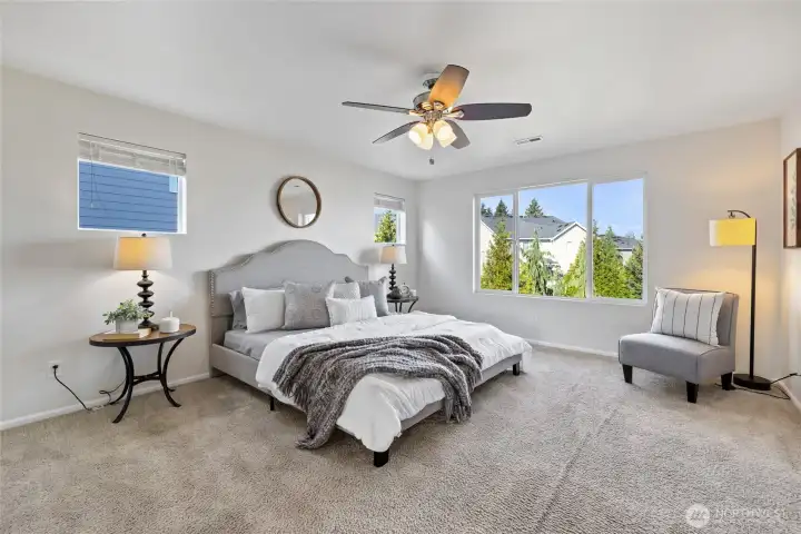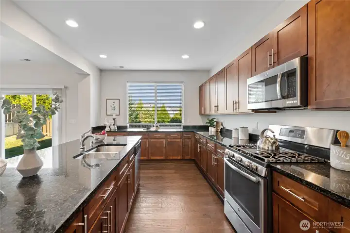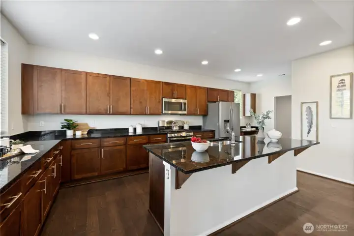 Welcome to this beautiful 5-bedroom, 3-bath Spanaway home, offering the perfect blend of comfort and style! With a bedroom and full bath on the main floor, the house is filled with natural light, highlighting a spacious kitchen featuring granite counters, stainless appliances, a large island, and a huge walk-in pantry. Upstairs you will find four more bedrooms, a bonus room, and a convenient utility room. The luxurious primary suite boasts a spa-like 5-piece bathroom. Step outside to a fenced backyard with peaceful green space behind it, plus enjoy community amenities with three playgrounds nearby. New interior paint in every room. Close to shopping, dining, and schools; this home truly has it all! Welcome home!