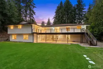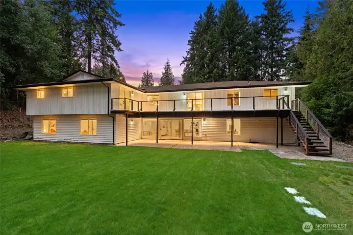 Modern luxury meets ultimate flexibility, with a little flare thrown in for good measure. Every inch of this exceptional home has been reimagined & beautifully curated to hit just the right notes. Chef's kitchen & wide open living spaces on each level will thrill the pickiest of buyers. Hidden door leads to a secret room with cool speak-easy vibes for next level entertaining. GORGEOUS primary suite w/ absolutely dreamy 5 piece bath & oversized walk in closet w/automatic garment steamer. Technically 5 bedrooms, but lives like 6. Phenomenal setup for multi-generational living, MIL, Adult Family Home (AFH), or short-term rental. Fantastic outdoor areas including a huge upper level deck & lower patio, fire pit, and expansive lawn & gardens.