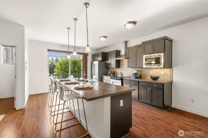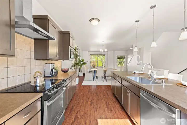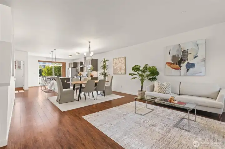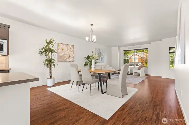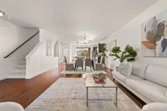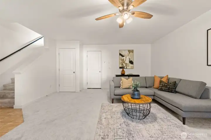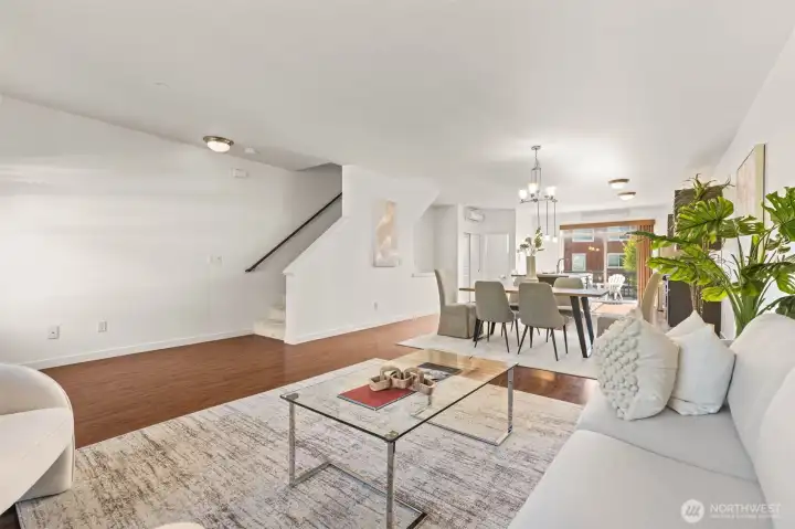 Welcome to your next chapter of comfort and style. This stunning 3-bedroom, 2.5-bath townhome offers 2,081 sq. ft. of stylish living designed for comfort and entertainment. Enter from the 2-car garage or front door into a cozy family room perfect for office space or an entertainment area for movie nights. The 2nd level features an open layout with beautiful hardwood floors, a bright kitchen with a new dishwasher, and a deck perfect for relaxing or hosting. The space feels massive and works beautifully for hosting dinners and parties. Upstairs, retreat to 3 spacious bedrooms with convenient W/D. Fresh paint throughout entire home, new carpet, and thoughtful updates throughout—this home is a fresh take on modern living!