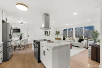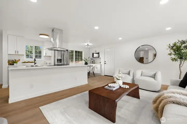 Welcome into this light-filled tri-level home located in a quiet Puyallup neighborhood off Canyon Road! The location offers easy access to freeways and amenities, making your commute very easy. Sitting on a .26 acre lot, this 1,716 sq ft residence features 3 bedrooms and 3 bathrooms. Enjoy the modern open concept kitchen and living room combo that's littered with natural lighting. The kitchen has an oversized overhang island for easy dining and entertainment, soft close cabinets, quartz countertops, and stainless steel appliances. Downstairs there is an additional large living area with sliding glass doors that opens to a generous backyard—ideal for entertaining or relaxing. This home is truly a must-see!