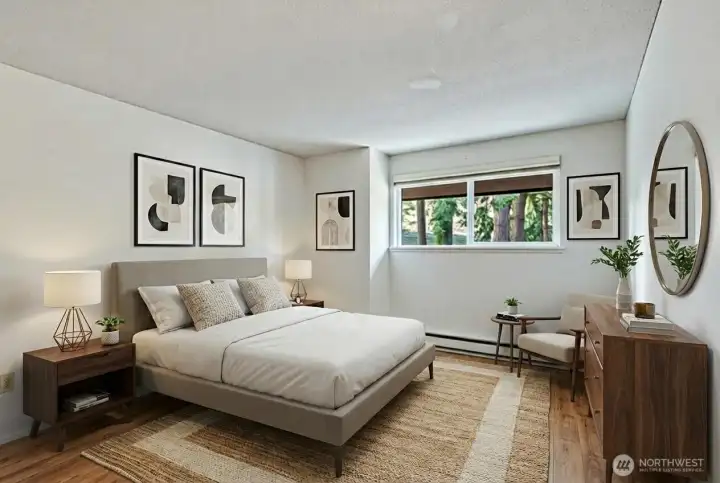 Welcome to the Maple Wood Condominiums! Instant Value + Great Opportunity + Well Managed HOA! Nestled among a picturesque landscape of mature trees and vibrant seasonal colors, this home offers exceptional privacy and tranquility. Large vinyl windows flood the interior with natural light, seamlessly blending indoor comfort with the beauty of the outdoors. Freshly painted and provides the perfect canvas to design and personalize to your unique style. The spacious living room and generously sized bedrooms create a comfortable and inviting atmosphere. A private patio just off the kitchen offers the perfect setting for morning coffee, evening relaxation, or outdoor entertaining. An enclosed entry adds convenience and security, while ample parking ensures ease for residents and guests alike. Enjoy resort style amenities including a community swimming pool, all in a highly private location close to everyday conveniences. This condo is ideal for those seeking low maintenance living without sacrificing comfort or charm. Sport Court, Pool, Shopping, Dash Point, & Major Transit , Light Rail & I-5. You Can Add Washer & Dryer! Welcome!