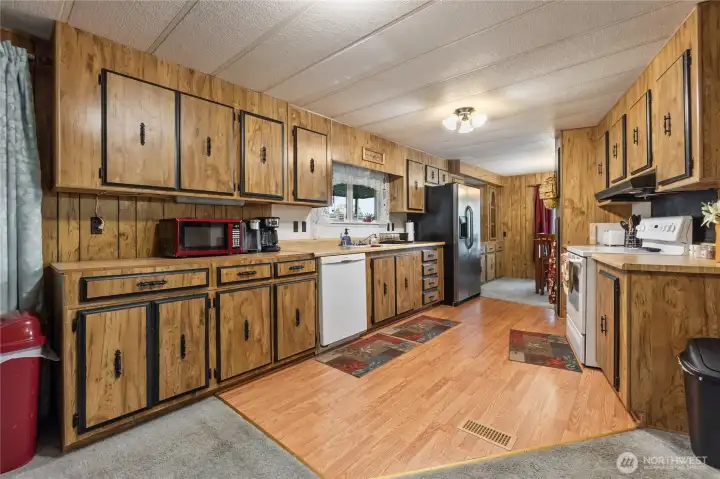 Charming and move-in ready, this 3-bed, 2-bath home in Liberty Village 55+ community offers comfort and convenience. The open layout features a bright living space that makes this home perfect for entertaining. Well-equipped kitchen with plenty of storage and new stove and dishwasher. The primary suite includes a private bath new custom bathroom vanity, while two more bedrooms offer flexibility for guests or hobbies. Enjoy outdoor living year-round on 2 covered deck. Recent updates include new piping and insulation beneath the home. A 2-car carport with ramp access and a large storage shed to add extra value. Great location near I-5, shopping, and more!