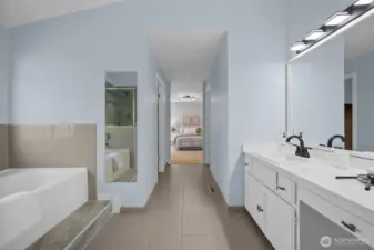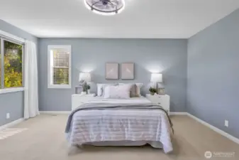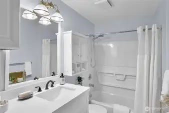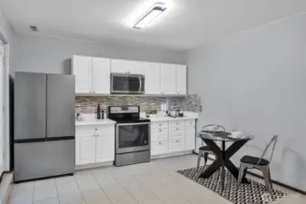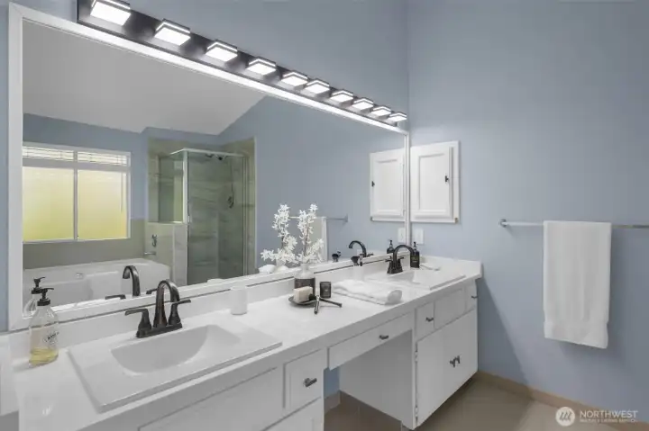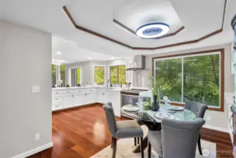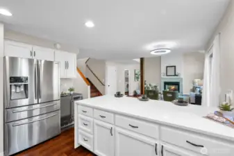Welcome to this inviting home tucked a quiet cul-de-sac near award-winning Northshore Schools. The light filled main level features a vaulted family room with cozy fireplace & open kitchen w/SS appliances, quartz counter that flows to dining room & entertaining space. Retreat downstairs to a full 2nd kitchen, two bedrooms, full bath perfect for multi gen living or rental potential. Upstairs serene primary suite with large 5 pc bathroom & walk in closet. Oversized two car garage w/extra storage. New 50 YEAR roof & gutters w/screens, carpet, interior & exterior paint all for peace of mind. Backyard backs to greenbelt for privacy w/trex stairs & vinyl fence. Easy access to Bothell, Kirkland, parks & freeways makes this your ideal location.