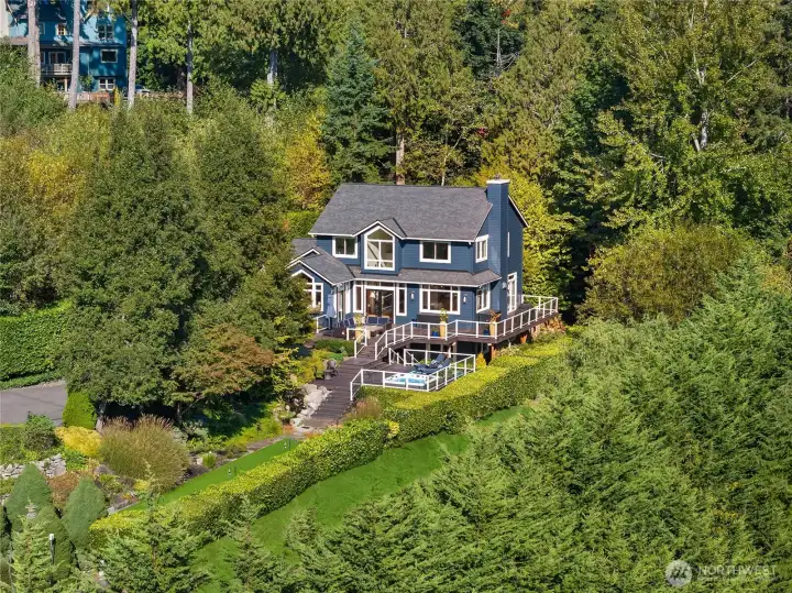 Enjoy stellar privacy & southern exposure on 1+ acres of manicured, park-like grounds featuring 3 fountains, Bocce court & a secluded firepit area with Mt. Rainier views. Custom-built by Andy Mueller and extensively updated, the home features high ceilings, extensive windows & a chef’s kitchen with Wolf range & 48” Sub-Zero fridge. Fantastic floorplan featuring 2 primary suites: 1 on the main level & 1 upstairs with stunning view of Mt. Rainier, plus a lower-level guest area with separate entry. Large rec/family room upstairs! Living room French doors open to multi-level decks & a hot tub. Coveted south-end location, tucked away off a quiet cul-de-sac just mins from Lynwood Center & Gazzam Lake. Over $200K in improvements in the last year!