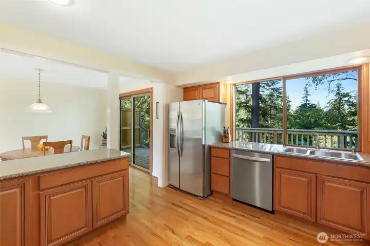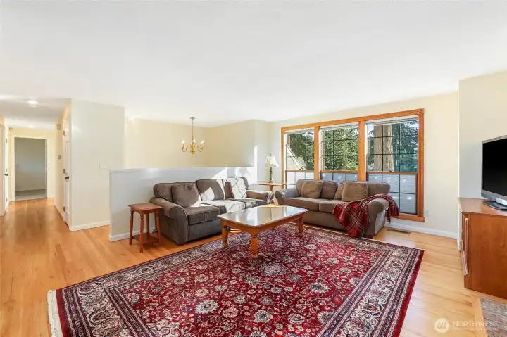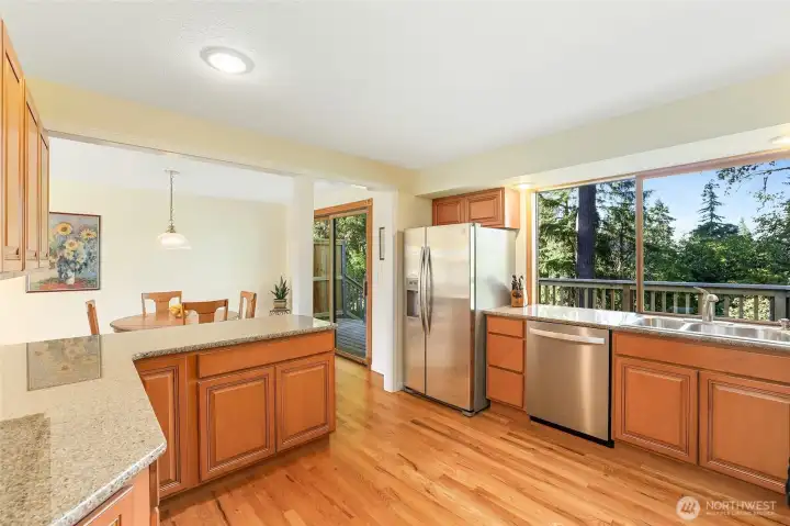 Beautiful move-in ready split-level with 5 beds and 2.5 baths in a quiet neighborhood. Hardwood floors and abundant natural light create a bright, welcoming feel. Spacious kitchen with granite counters, stainless appliances, and large peninsula is perfect for gatherings and everyday living. Primary suite offers private bath and walk-in closet, with 2 additional bedrooms and a full bath nearby. Daylight basement offers 3/4 bath, laundry, family room, and 2 more versatile bedrooms. Lush backyard backs to a serene greenbelt, 2-car garage with corner shop, RV parking, and a massive unfinished attic with full headroom for storage. Easy access to West Campus and BPA trails, The Quad shops, dining, and freeways. The perfect place to call home.