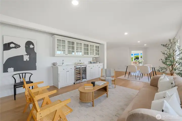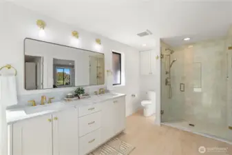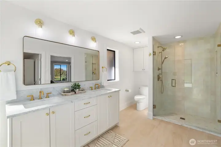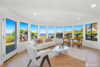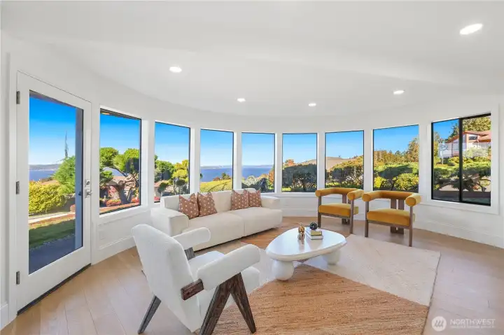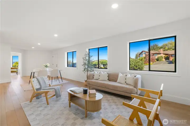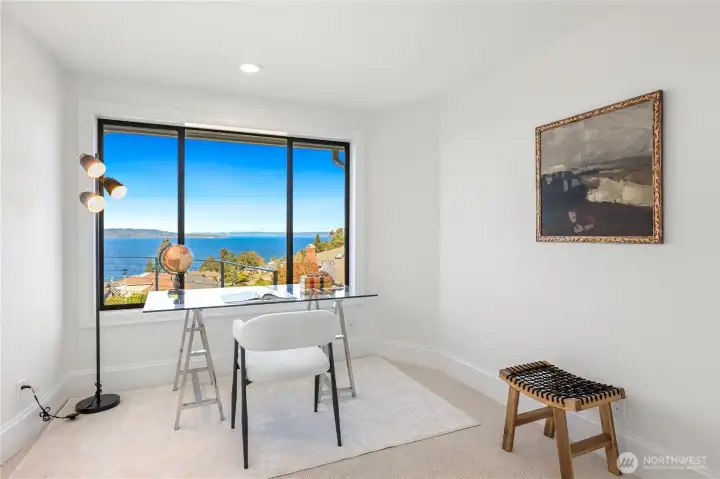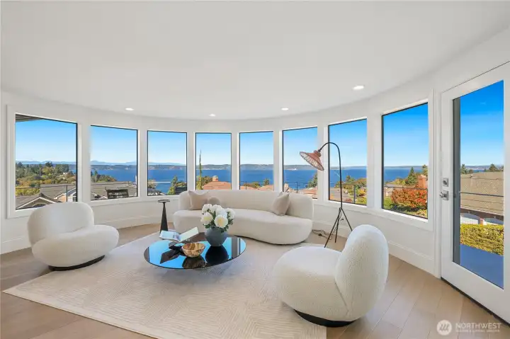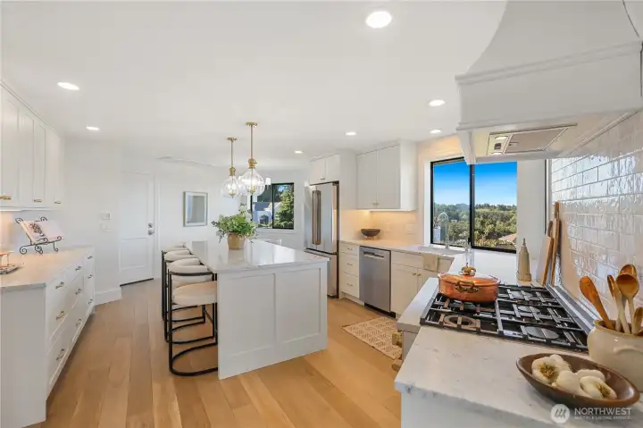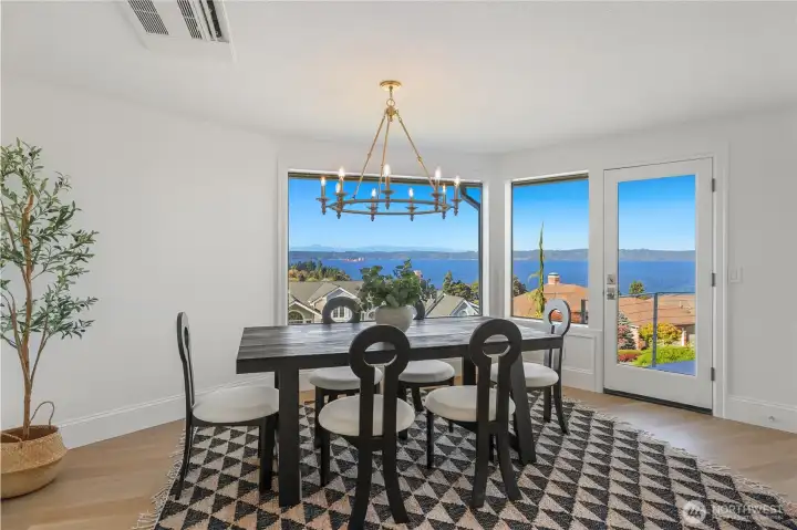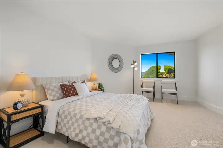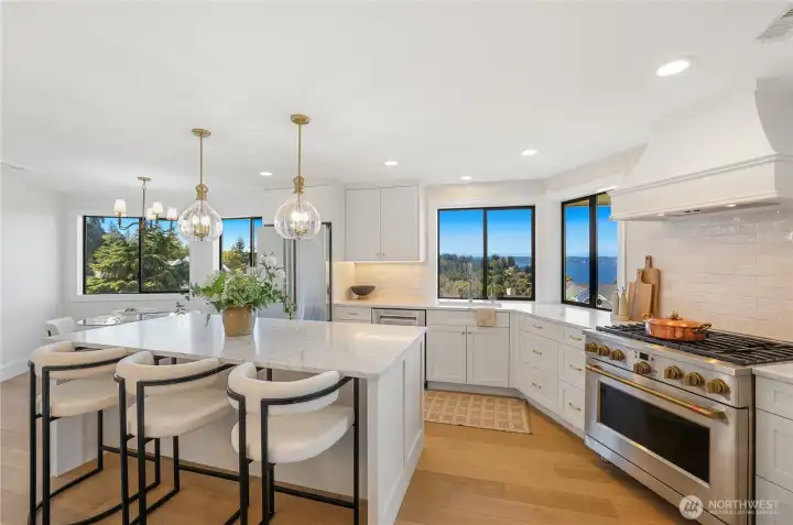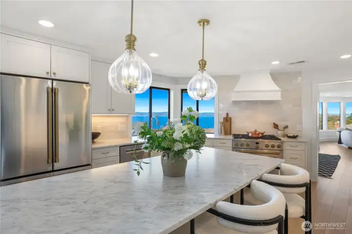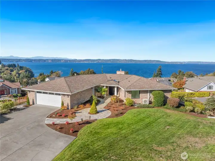 Experience the ultimate in PNW luxury living in this stunning fully remodeled home in Bayview Country Estates. Breathtaking views of Puget Sound & the Olympic Mountains from every room! The light-filled open layout features a designer kitchen w/ quartz counters, premium cabinetry, high-end SS appliances, walk-in pantry & luxe laundry room. Retreat in the serene main floor primary suite w/ sweeping vistas, & a spa-inspired bath w/ an adjacent office or nursery. Relax in the formal dining & living room upstairs, or gather in the spacious lower family room & bonus/great room w/ a kitchenette offering ADU potential. Two lower beds & full bath w/ storage galore! Set on a beautifully landscaped .51 acre lot, w/ timeless PNW charm at every turn!