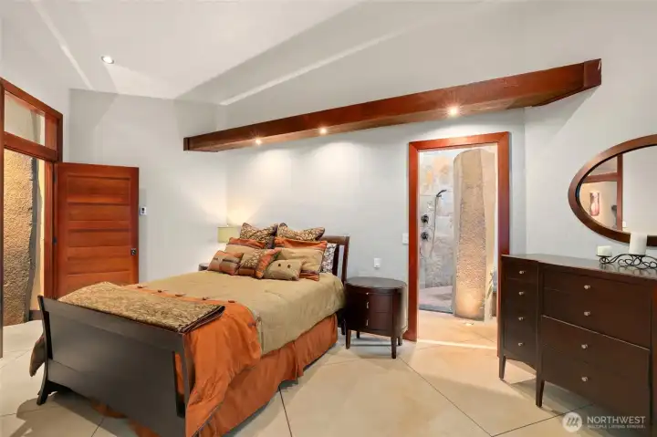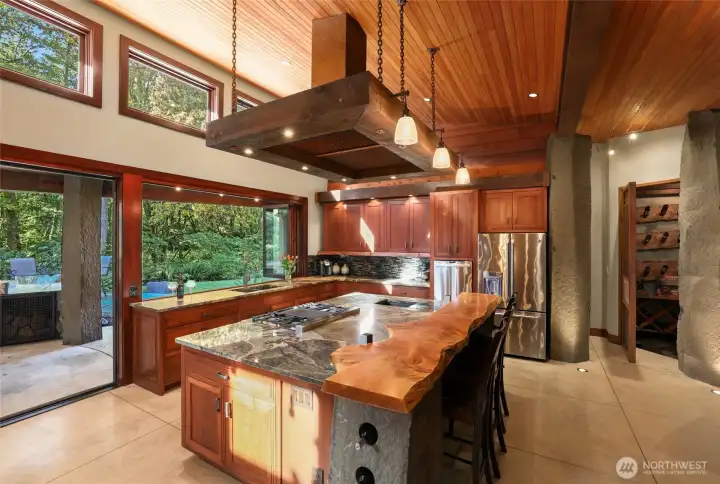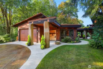 Architectural masterpiece, designed to blend rustic modern elegance w/harmonious indoor-outdoor living. Locally hand-milled & Columbia Basin basalt columns, custom cabinetry & live edge built-ins create a home rooted in nature yet refined in detail. Soaring ceilings, exposed beams & radiant heated floors. ONE level open floor plan anchored by gourmet kitchen w/grand island, dining w/wet bar, greatroom w/stone fireplace, & European-inspired wine room. Dramatic panoramic door opens to covered courtyard w/outdoor kitchen, fire feature & gardens, effortlessly connecting to detached guest casita w/ ¾ bath. The Primary ensuite offers a spa-caliber experience & courtyard access. Oversized garage w/bonus room. Nestled on a goregous wooded 2+acres.