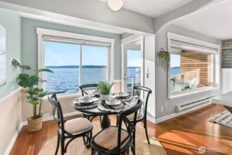 Perched above the Puget Sound with breathtaking 180° water views, this remodeled Redondo Beach condo offers the best of coastal living! Enjoy light-filled living spaces, an updated kitchen, and a sunlit dining nook showcasing panoramic views! Two flexible bedrooms feature an accordion wall that can open to create a large primary suite or close for a 2nd bedroom. Includes in-unit laundry, covered parking, and two storage units. The building underwent a complete studs-out rebuild in 2022-new roof, siding, insulation, windows, and more! Low HOA dues cover cable/internet, WSG, exterior maintenance, pool, sauna, and clubhouse. The Redondo Beach community features a stunning waterfront boardwalk & parks! Minutes to the new light rail and airport!