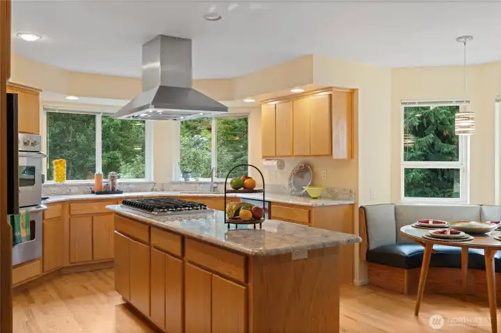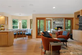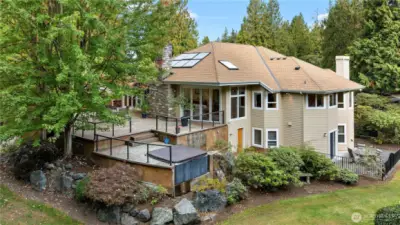 Architectural masterpiece set on manicured grounds, provides tranquility with a seamless blend of sophistication. Designed to entertain w/ gourmet kitchen, Viking, Thermador, 6 burner cooktop, tall vanity height cabinets, & stone c-tops. Spectacular folding doors open the Sunroom to the beautiful deck and a sense of awe, blurring the boundary between indoors and nature. The gazebo/outdoor kitchen is fully equipped w/ SS BBQ, sink and refrigerator. The primary suite is an intimate sanctuary with a luxurious ensuite, heated floors, 2 sinks, glass enclosed shower, all wrapped in polished granite. A dream 2100 SF heated shop, w/ attached ADU, perfect for car collection, woodworking, sports court. Hot tub/Spa, GENERAC. An exceptional home.