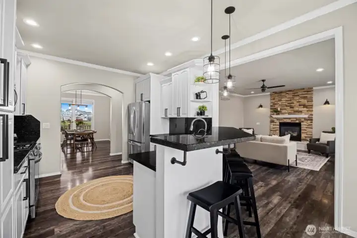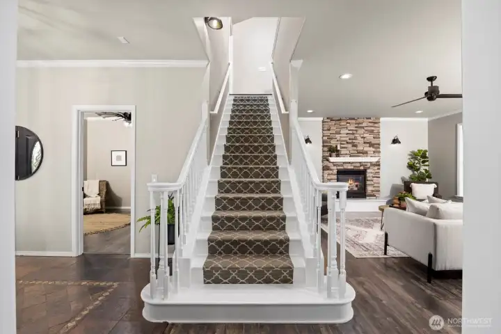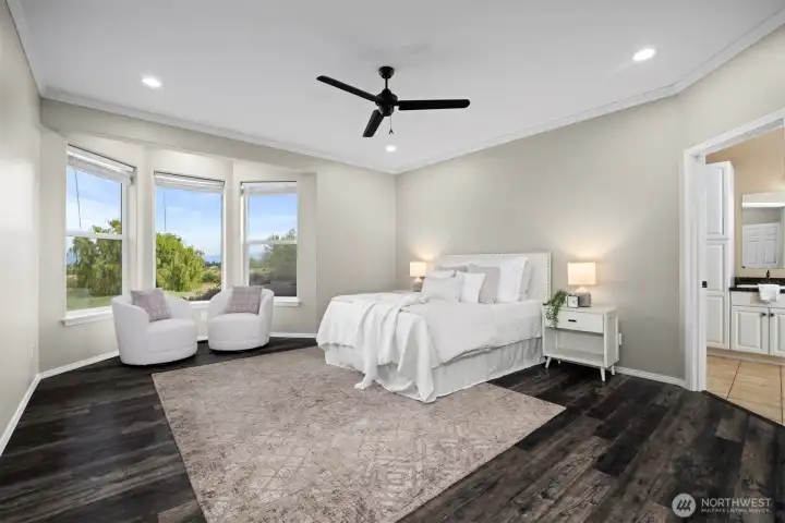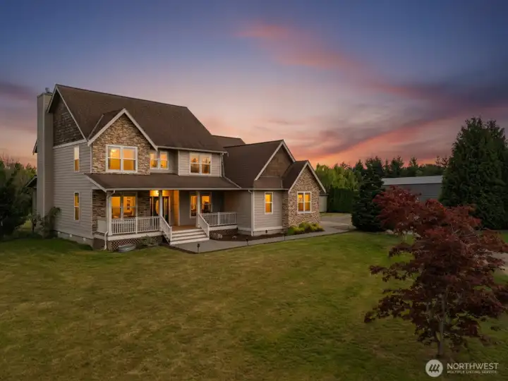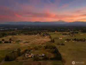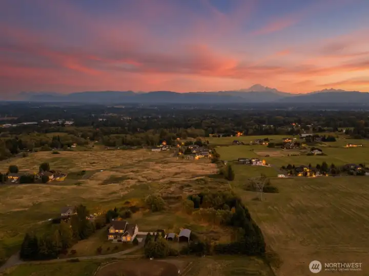 Rural resplendence awaits! Set on 5 picturesque acres + boasting views of Mt Baker, this turnkey 4-bed/3.5-bath home is beautiful, private, + move-in ready. Main level living features office, formal dining room, + sunny kitchen w/ quartz counters, SS appliances, + lots of cabinet space that opens to large living room w/ fireplace + backyard access. Spacious primary suite offers + boasts full bath w/ jetted tub + walk-in closet. Upstairs you'll find 2 guest beds, full guest bath, huge add'l living room, bonus room, + 2nd primary w/ full en-suite bath. Plus, new int. paint throughout! All this w/ attached 2-car garage + big carport on a bright open lot w/ orchards, gardening area, and tons of recreational space at the end of a private road!