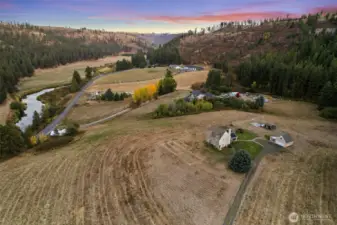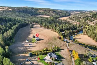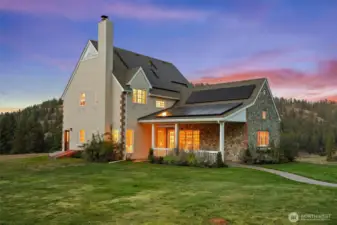 Peaceful country living on 10 acres with views of Latah Creek. This fully solar-powered 4,100 sq ft home, custom built in 1991 & recently updated, blends timeless architecture with modern comfort. Rock & red sandstone exterior is framed by old-growth pine & tamarack. Inside: open layout, wood-wrapped windows, solid wood doors, built-ins & stone fireplace. Antique doors & knobs add charm. 5bd/3ba design features a primary suite plus main floor bedroom with adjoining bath, perfect for multigenerational living or guests. Updates include interior/exterior paint, refinished maple floors & remodeled baths. Minutes to South Hill amenities, with abundant wildlife & endless outdoor beauty. Adjacent 10-acre parcel available. Rare Valleyford estate!
