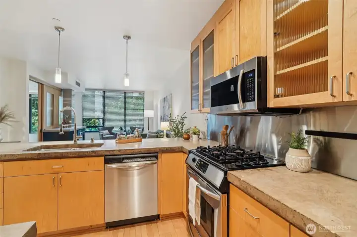 Welcome to your refined retreat in one of Seattle’s most vibrant neighborhoods. Nestled in the iconic Bellora building, this sophisticated 1-bedroom + den blends modern design with unbeatable access to Seattle’s best. Clean lines and an open floor plan allow for seamless flow. Premium touches include: hardwood floors, Maple cabinetry and stainless steel appliances. Gas fireplace keeps things cozy. Ample closet/storage space keeps the layout uncluttered. Enjoy top-tier amenities like a 24/7 gym, rooftop deck, concierge, and pet-friendly policies. Secure garage parking included. No rental cap. Just blocks from Olympic Sculpture Park, Pike Place, and downtown Seattle’s best dining and nightlife this is the Emerald City at it's best.