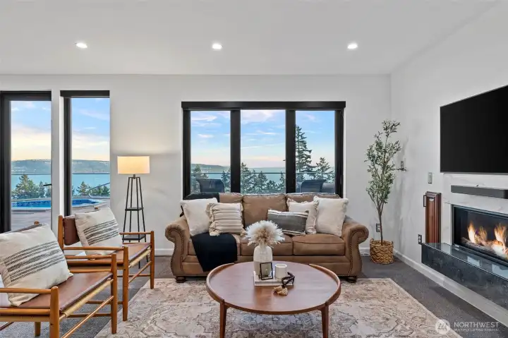 Experience Whidbey Island luxury with exceptional craftsmanship in this custom home with breathtaking views of the Cascades, ocean, and brilliant sunrises and sunsets. Every detail, from the Brazilian quartzite island to thoughtfully designed outdoor spaces that capture the view from every angle, sets this home apart. Smart-wired for effortless living with automated lighting, blinds, climate, and a saltwater spa, all easily controlled in person or from afar. A true masterpiece of comfort, design, and island serenity.
