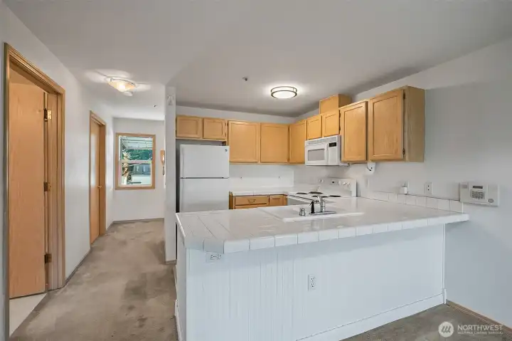 Spacious top-floor corner unit offers breathtaking views of Mt. Baker, the Cascade Mountains, and the valley below. On clear days, these stunning vistas can be enjoyed from the bedroom, living room, and the large covered deck, which also includes a private storage closet. Inside, you’ll find a well-designed floor plan featuring 1 bedroom, 1 full bathroom, and a dedicated in-home laundry room. The kitchen includes tile countertops, a tile tub surround, and comes complete with all appliances, including the refrigerator, washer, and dryer. Additional highlights include elevator access, one reserved parking space in the garage, and a storage locker. Conveniently located just minutes from I-5 and Boeing. No Rental Cap