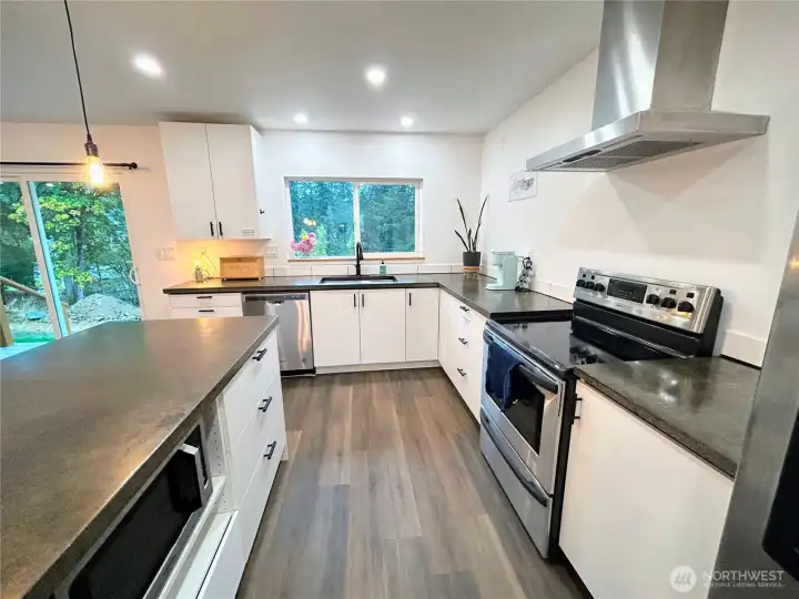 Come make your home at the edge of the Galbraith trails! This single level, 4 bed, 3 bath home has been tastefully updated and features a large open kitchen, dining, and living area making it a great hosting space. Enjoy the views from the hilltop home overlooking the new neighborhood cul-de-sac. Primary bedroom features walk-in closet and full bath. New roof installed 3 yrs ago, siding and windows replaced this year. The home backs up to its own pond and nature escape making the lot over 33,000 sq ft. Close to Lake Padden, Lake Whatcom, Galbraith, and the historic Bellingham waterfront. This is a rare opportunity in town.