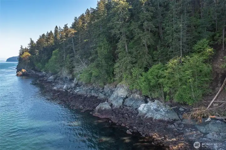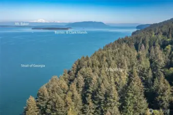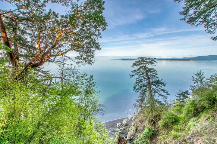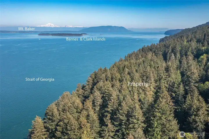 Experience unparalleled tranquility on this private 5-acre waterfront plateau with 270' of shoreline frontage, where breathtaking vistas of the island archipelago meet the majestic backdrop of Mt. Baker. The 1,224 sq. ft. two-level home features a bright, open-concept great room, complemented by a serene main-floor bedroom and bath. Upstairs, a versatile bonus space offers two distinct areas perfect for a home office or additional bedrooms. Outside, a flagstone patio is a peaceful oasis, and a lush, irrigated Sunny garden provides fresh tomatoes and vibrant flowers. Expand your horizons with the adjoining 10-acre parcel also available (MLS#2451347). Shared well.
