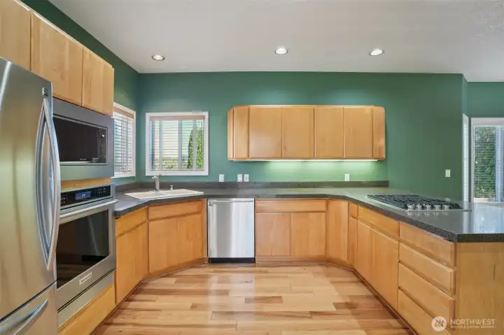 Beautifully maintained Camas home backing to a serene greenbelt. This light-filled residence offers a comfortable and open layout with formal living and dining spaces, plus an inviting kitchen that flows seamlessly into a second dining area and family room.Features include hickory hardwood flooring, new carpet on the main level, and a dedicated laundry room with ample storage. Recent updates provide peace of mind — a new HVAC system (2024), oven, microwave, and cooktop (2025), along with a Terra Firma–encased crawl space and leaf guard gutters. The property is professionally landscaped and meticulously maintained. Enjoy a private back deck overlooking the green space and HOA-maintained trails leading directly to Dorothy Fox Elementary.