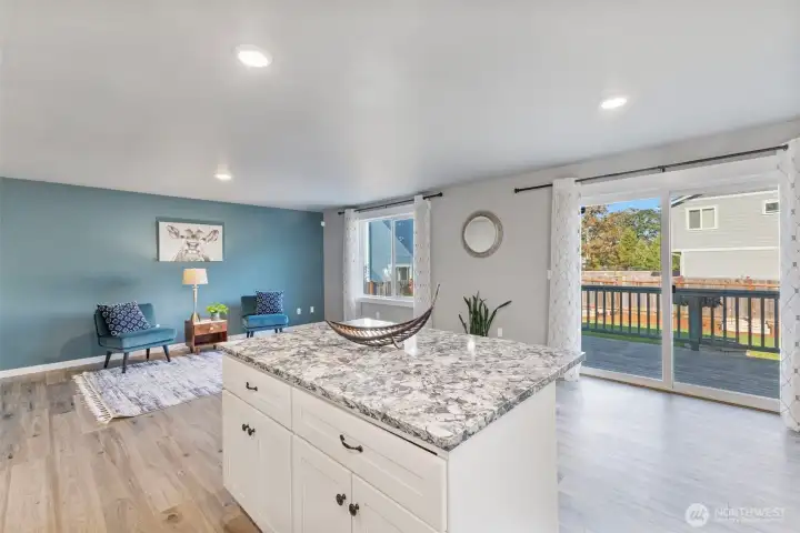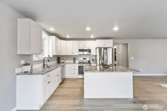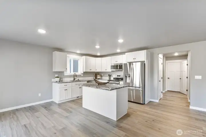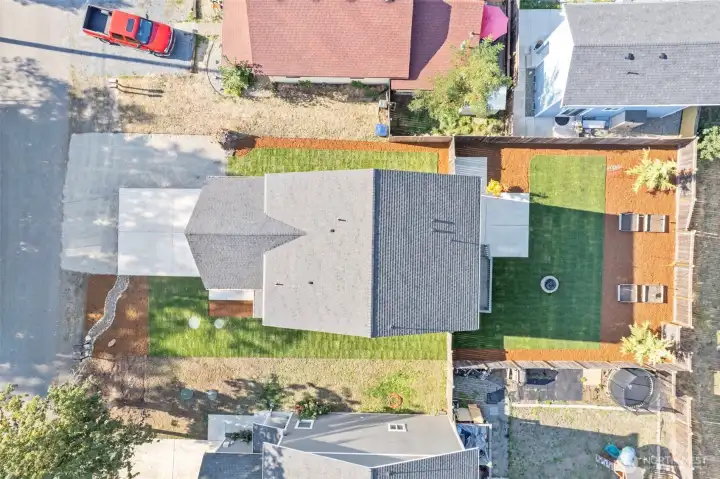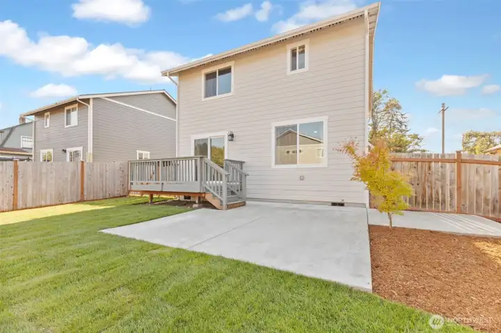 Immaculate 4-bedroom home in a peaceful neighborhood! Built in 2020, this home features cement plank siding and an efficient heat pump with air conditioning. Inside, LVP flooring, tall ceilings, and large windows create a bright, open feel. The kitchen offers white shaker cabinets, stainless steel appliances, and a large island. Upstairs, all four bedrooms, including a primary suite with dual sinks and partial mountain views, provide comfort and space. The front and back yards were completely redone with professional landscaping. The back yard offers a concrete patio, fire pit, and raised garden beds. No HOA and easy access to Yelm City Park, theater, and town amenities!