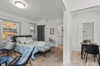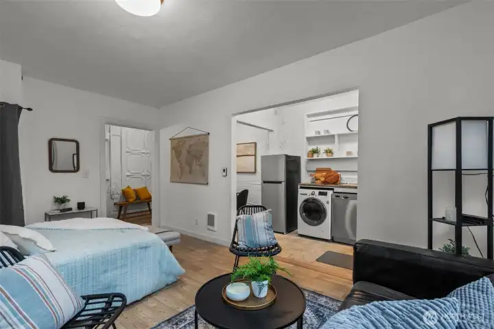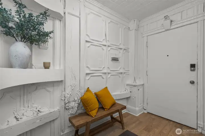Looking for the perfect investment (short term welcome here!) piedaterre or full time residence in the heart of it all? Welcome to 5th Avenue Court, one of Seattle's landmark historic buildings with modern updates and parking! Just minutes to the best of Downtown living, shopping, dining, transit, and all  Seattle has to offer. Renovated and retrofitted condo community preserving the historic charm of 1922. Artistic updates to your new condo including Venetian plaster walls (over drywall for easy of anchoring art), modern kitchen with newer SS appliances, in unit washer and dryer + a cozy yet functional floorplan perfect for your in city oasis. The search for the perfect place is real. Come and see what makes this condo so special today!