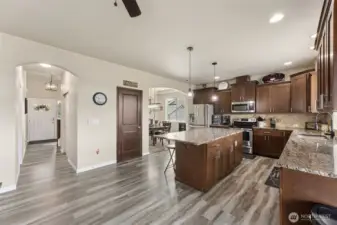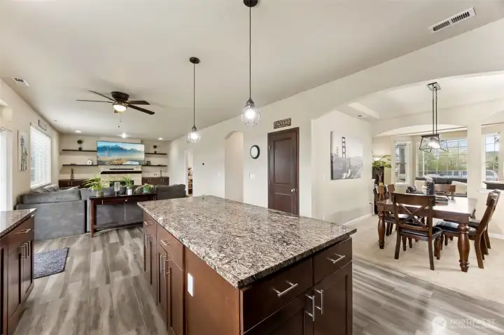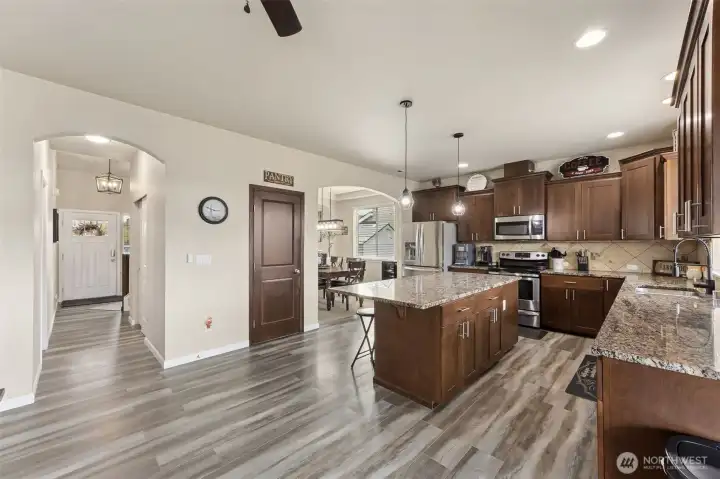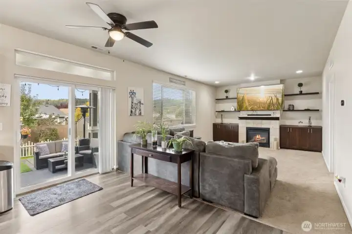 This spacious 4-bedroom 2.5-bath home offers over 2,300 sqft of comfortable living with a bright, open layout. Step inside to a vaulted entry and high ceilings. The large kitchen features soft-close cabinetry, granite counters, and a generous island that flows seamlessly into the living room, complete with built-in shelving, perfect for gatherings or cozy nights in with the gas fireplace. Upstairs, you’ll find all four bedrooms, including a generous primary suite with a versatile bonus room-ideal for a home office, gym, or private retreat. Enjoy the beautifully landscaped backyard with a covered patio, mature apple and plum trees, and plenty of space to relax or entertain. A perfect blend of style, comfort, and functionality
