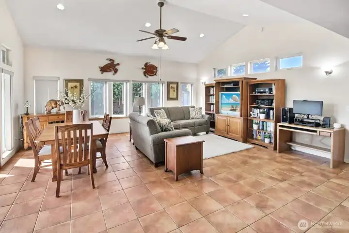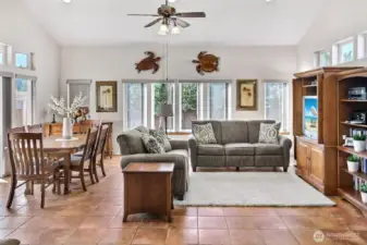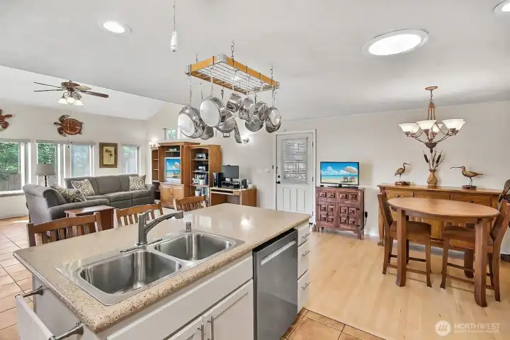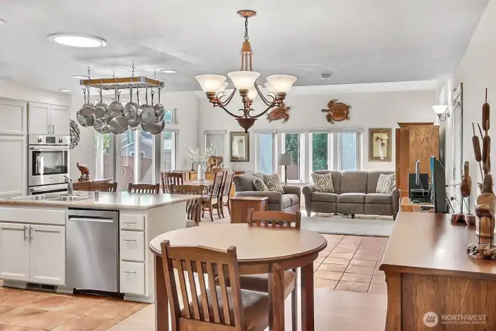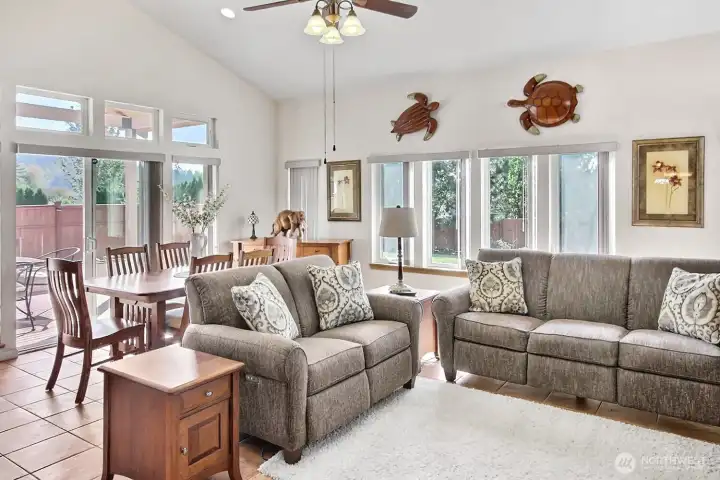 Impressive best describes this lovingly maintained, one owner rambler on a 1/4 acre lot in the heart of Black Diamond! Open, spacious and light-filled, you'll find soaring ceilings over the 'super sized' great room & state of the art kitchen. And what a kitchen - quartz countertops, huge island, an abundance of cabinetry & top of the line stainless appliances including a double oven! 2nd living area with gas log fireplace. Maple & tile flooring throughout. Spend summer nights overlooking the huge, fenced backyard from your covered outdoor living space! Hardiplank siding, AC. Generator and all appliances stay. It's all here in one of the most up and coming areas in all of King County!