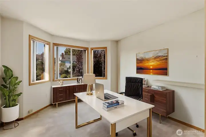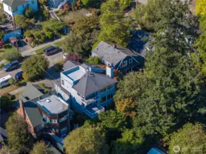 Welcome to your City Oasis, this 1990 Contemporary home is in the amazing Ravenna Neighborhood! Enjoy sidewalks & tree lined streets close to the heart of Seattle, yet far enough from the city bustle. Main level has a wonderful living room w/fireplace, dining room, 1/2 bath (with full laundry) & kitchen w/fabulous deck out the back. Lower daylight level has a large bedroom w/gas fireplace & slider door to private patio+adj. 3/4 bathroom. Upper level has primary w/4 piece bath, private deck, & walk-in closet. There are 2 other bedrooms & another full bath on this level. Fantastic rooftop deck w/bar sink. Enjoy territorial views & long views of Mt Rainier, Lake Washington & DT Seattle. Two car garage. Home is in need of some repair & TLC.