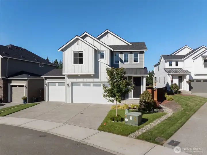Experience a home masterpiece living in this stunning 5-bed, 4.75-bath, 3,540 sq ft Richland American home (2022) with tranquil lake views from every level. Soaring vaulted entry ceilings, walls of windows on each floor & a grand staircase create immediate grandeur. High-end finishes include California Closet upgrades throughout, lush tile & marble accents in bathrooms, custom kitchen backsplash & stainless appliances. The owner's suite offers a spa-inspired bath & expansive walk-in closet. The finished walk-out basement with built-in bookcases provides versatile space for entertaining or a mother-in-law suite. Community park across the street. Minutes to Southworth Fast Ferry—effortless commutes to downtown Seattle, West Seattle & beyond!