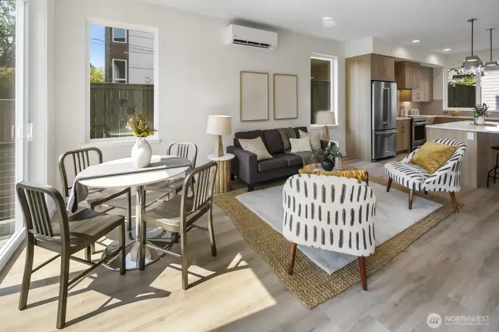 BUILDER-PAID 2.99% AVAILABLE FOR QUALIFIED BUYERS! Welcome to 62nd St Townhomes: 8 stunning new Olsen Anderson homes in ideal Ballard location. TH1 is a spacious 4 BED townhome with soaring ceilings, open floor-plan, amazing quality top to bottom. Step inside to wide-plank floors, sun-drenched rooms, island kitchen, gorgeous baths, big windows for natural light. Entertain friends on main floor patio or huge roof deck. Retreat to a spa-inspired primary suite. Enjoy the convenience + luxury of a spectacular new Built Green home with AC, efficient systems, designer finishes, EV-ready parking. No HOA. All this in great location, steps to world class restaurants, shops, night life, parks, Ballard Farmer's Market. Hurry, only 2 homes left!
