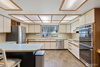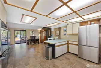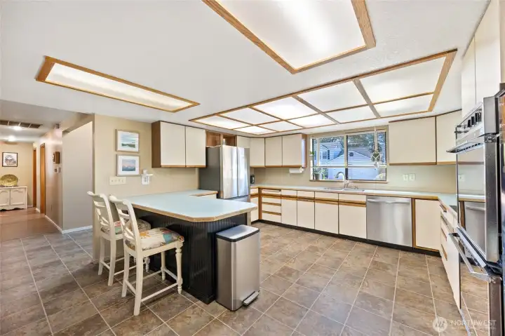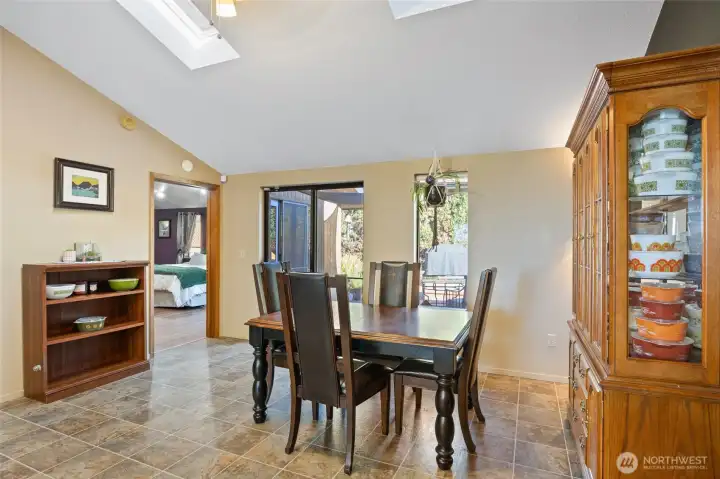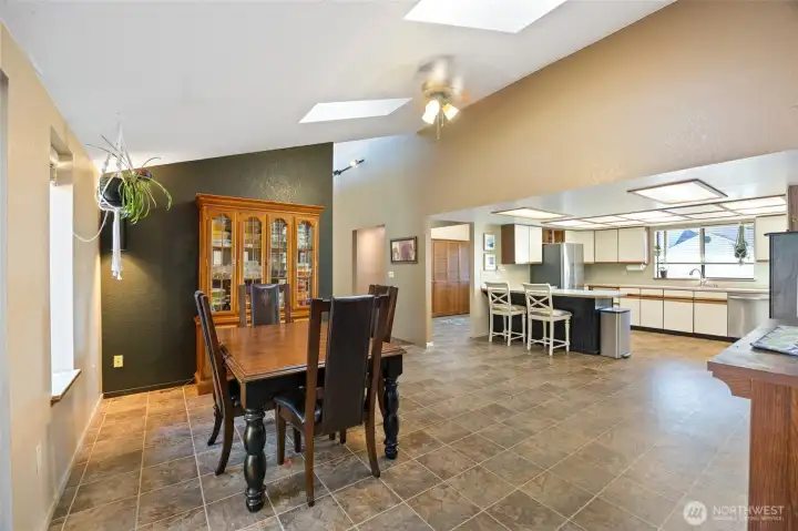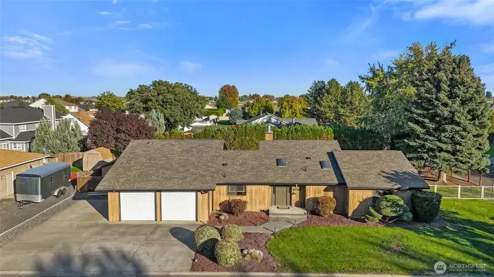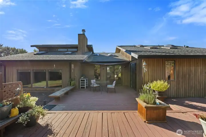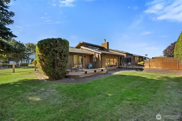 Unique 2,288 sq. ft. rambler on a corner lot in desirable Pelican Point. This home features 10 skylights, vaulted ceilings, and a sunken living room with clerestory windows and wood-burning fireplace. The large kitchen opens to the dining room, creating an ideal space for gatherings. Bedrooms are generously sized, including a primary suite with ¾ bath and walk-in closet, plus a spacious full guest bath. Step outside to a private multi-level wood deck, perfect for entertaining. Extras include underground sprinklers, RV parking, storage shed, and mature landscaping. A one-of-a-kind property filled with natural light and endless potential.