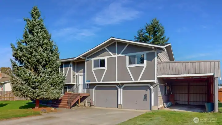 Welcome to this thoughtfully designed 3-bedroom, 2-bath split-level offers comfort, flexibility, and room to grow. A rare find with both an attached two-car garage and carport, plus a covered patio overlooking a garden area and yard. The lower level features a second kitchen, offering great potential for multi-generational living or guest quarters. This home combines convenience with classic Northwest charm. Conveniently situated near shopping, parks, — a fantastic opportunity to make this your home!